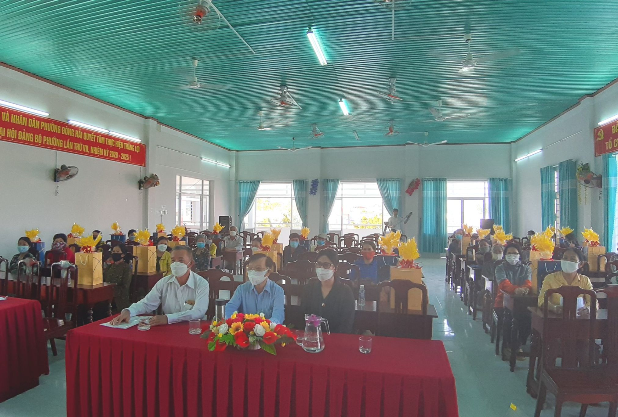 Dự trao quà, có lãnh đạo UBND phường Đông Hải, UBND phường Đạo Long, đại diện đơn vị tài trợ Tập đoàn Midgroup và nạn nhân phường Mỹ Hải, Đông Hải và nạn nhân thuộc địa bàn phường Đạo Long.