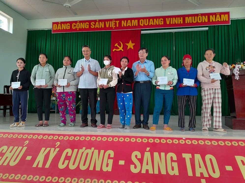 Ông Nguyễn Ngọc Chiến, Chủ tịch Hội tỉnh Phú Yên tặng quà cho nạn nhân tại xã Phú Mỡ, huyện Đồng Xuân