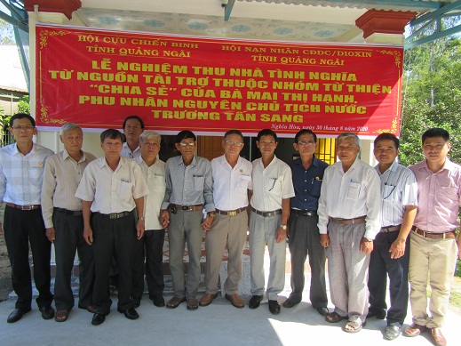 Nhân kỷ niệm 75 năm ngày Quốc khánh Nước Cộng hòa Xã hội chủ nghĩa Việt Nam 2-9, sáng ngày 30/8/2020, Hội NNCĐDC/dioxin tỉnh phối hợp với Hội Cựu chiến binh tỉnh tổ chức nghiệm thu nhà tình nghĩa cho ông Ngô Ngọc Trung ở thôn Hòa Bình, xã Nghĩa Hòa, huyện Tư Nghĩa. Ông là NNCĐD và là Cựu chiến binh, ông thường xuyên bị đau ốm, có 01 con trai là NNCĐD bị thiểu năng trí tuệ, thường xuyên đau ốm, quậy phá, 2 cha con sống trong căn nhà tạm bợ, xây dựng từ năm 1982. Hoàn cảnh gia đình rất khó khăn, không có khả năng làm nhà.