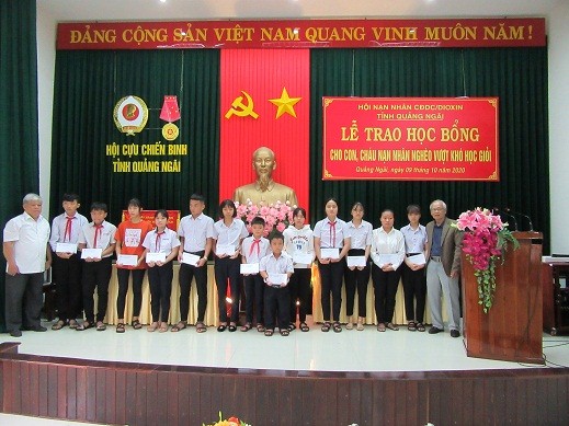 Dịp này Hội NNCĐDC/dioxin tỉnh đã trao 25 suất học bổng, cho con, cháu NNCĐDC nghèo vượt khó trong học tập với tổng số tiền là 29 triệu đồng. Trong đó, nhóm Hảo tâm của Giáo sư, Tiến sĩ khoa học, Bác sĩ Phan Thị Phi Phi tặng 10 suất học bổng, mỗi suất 1,4 triệu đồng. Hội Khuyến học tỉnh tặng 15 suất học bổng, mỗi suất 1 triệu đồng.