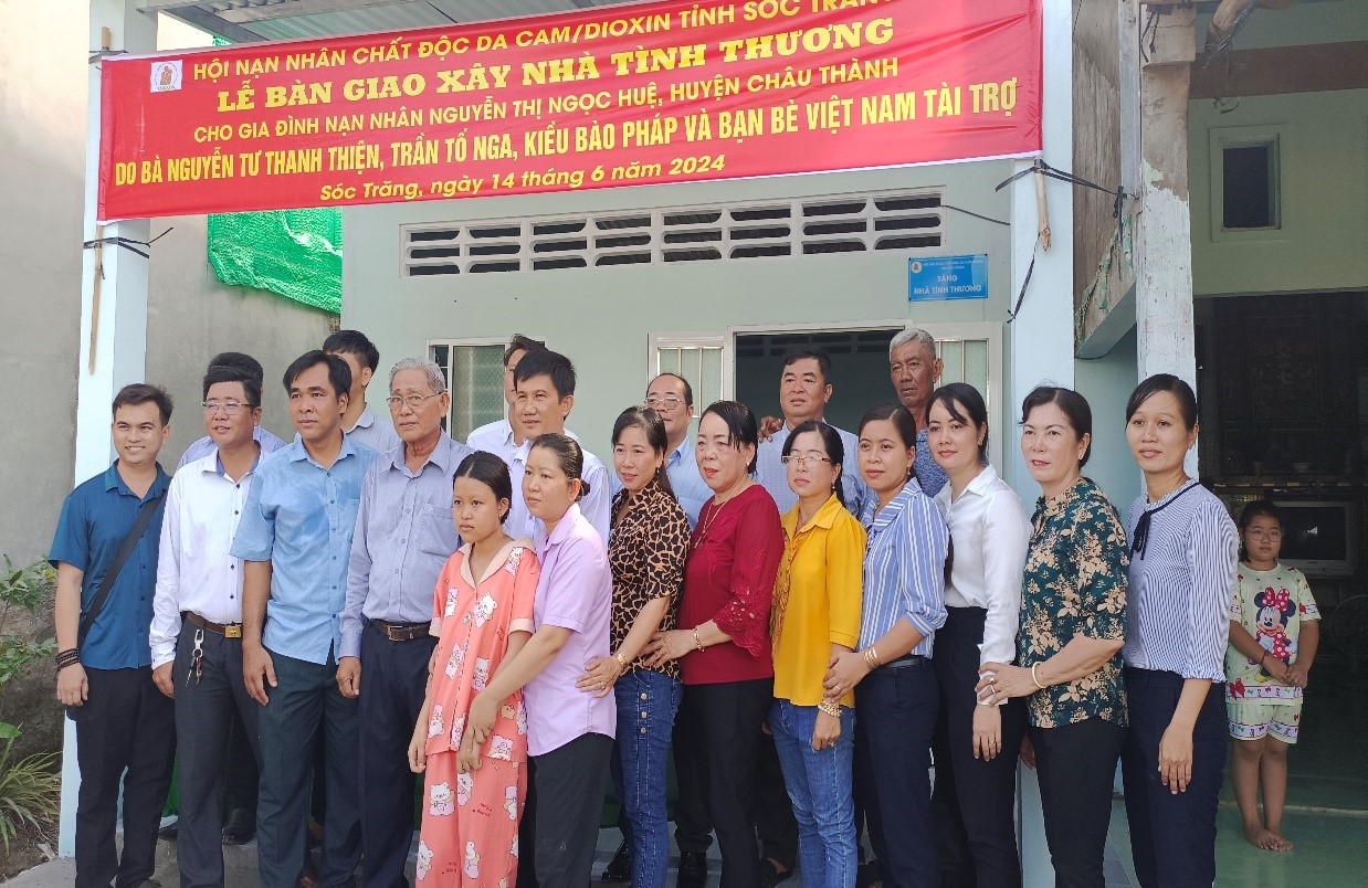 Căn Nhà tình thương được xây dựng và bàn giao cho chị Nguyễn Thị Ngọc Huệ, sinh năm 1988, ngụ ấp Kinh Mới, xã An Ninh, huyện Châu Thành. Chị có 2 con, con lớn tên là Nguyễn Ngọc Tường Lam, sinh năm 2011, bệnh ung thư máu, gan to, mỗi tháng phải truyền máu 1 lần. Căn nhà được xây với diện tích 44m2, dài 11m, rộng 4m, nền lát gạch men, 2 vách xây tường, mái lộp tôn; tổng kinh phí xây dựng là 70 triệu đồng, do Hội NNCĐDC/dioxin tỉnh vận động bà Nguyễn Tư Thanh Thiện và bà Trần Tố Nga, Kiều bào Pháp tài trợ 60 triệu đồng; Vật liệu xây dựng Quang Cư hỗ trợ 4 triệu đồng; gia đình có được 6 triệu đồng.