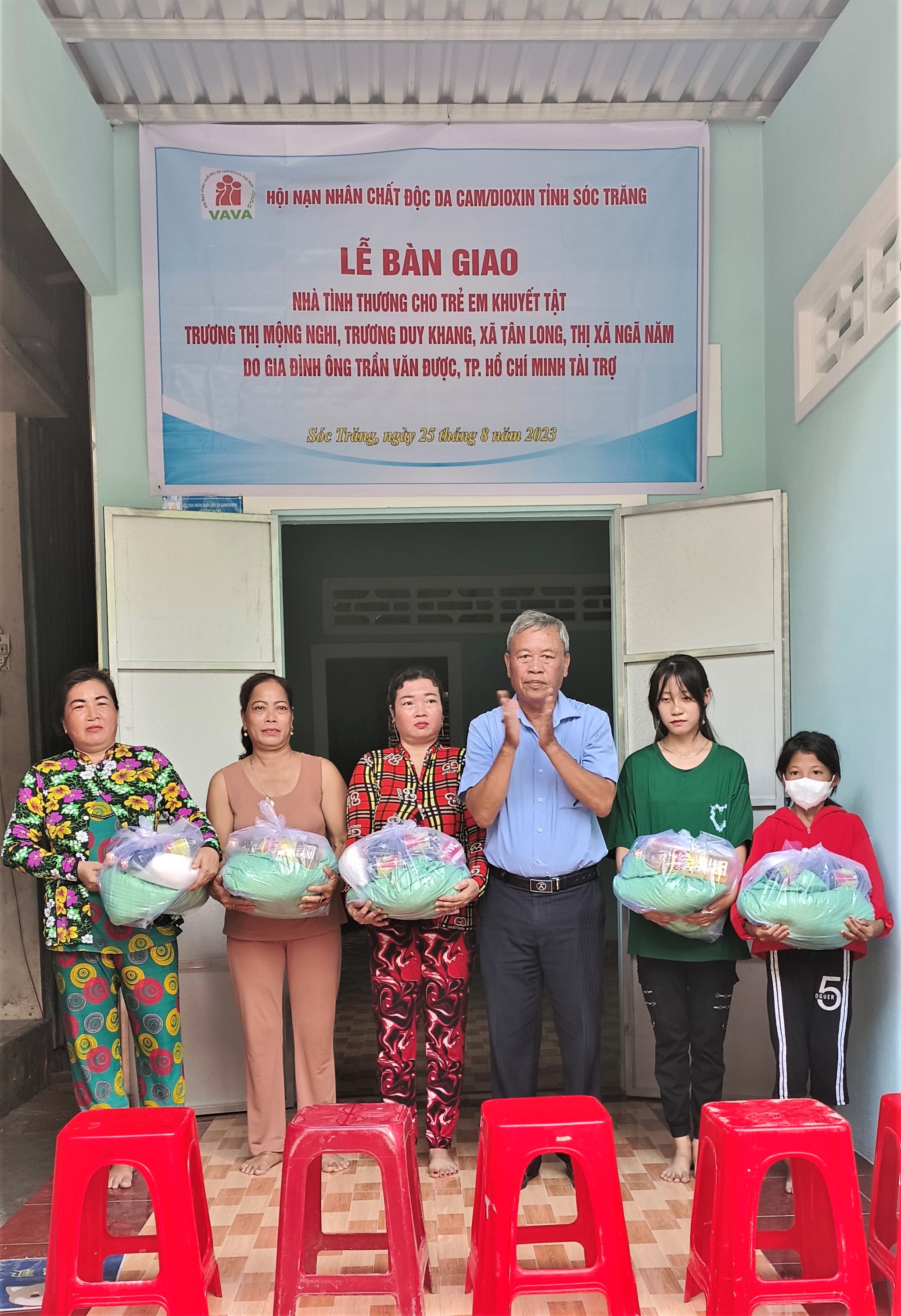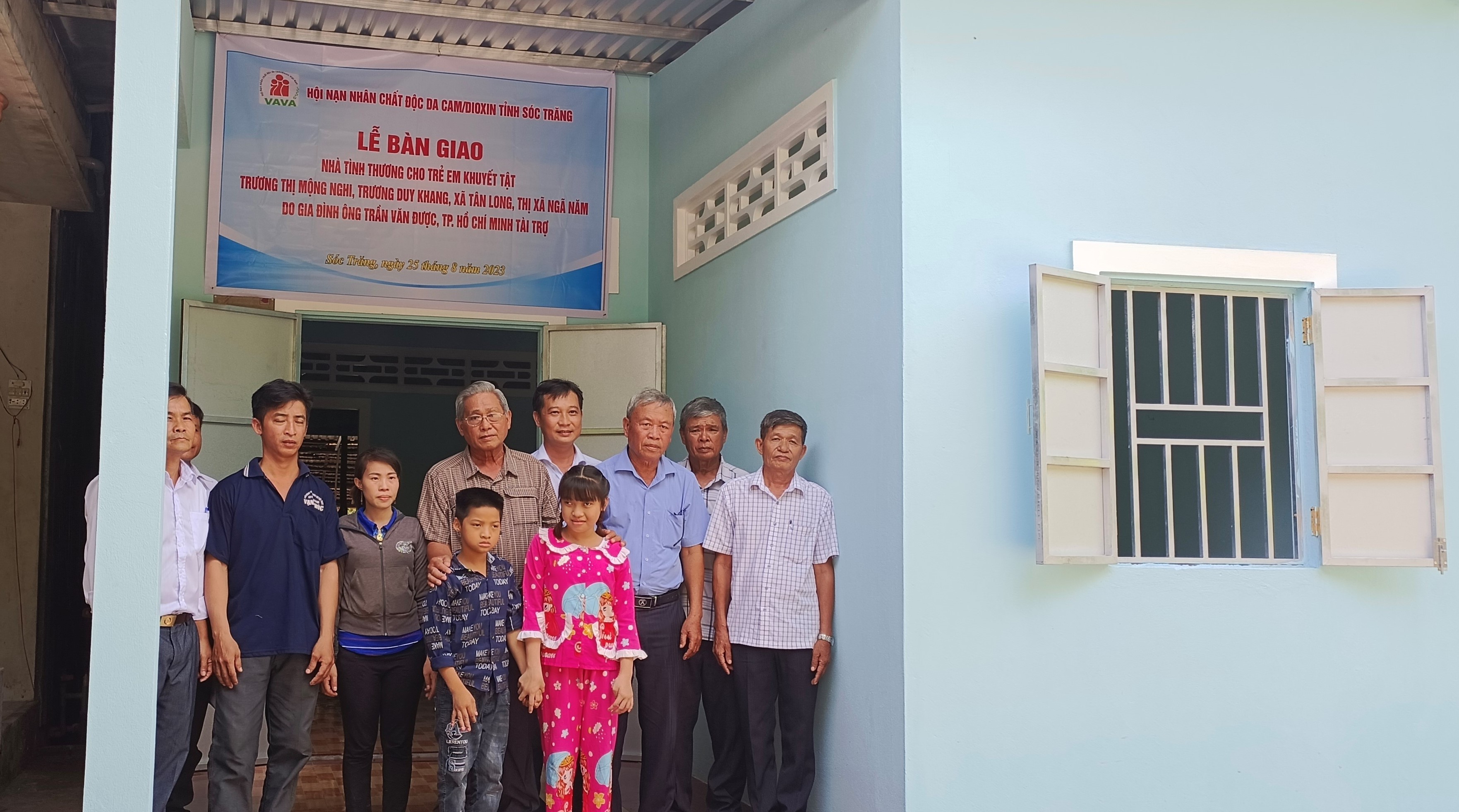Sau hơn 1 tháng khởi công, căn nhà nhà tình thương đã hoàn thành được bàn giao cho gia đình có 02 NNCĐDC Trần Thị Mộng Nghi, (sinh năm 2011) và Trương Duy Khang (sinh năm 2014), cư trú ấp 18, xã Tân Long, thị xã Ngã Năm, tỉnh Sóc Trăng. Căn nhà được xây dựng bán kiên cố với diện tích ngang 4,375m, dài 14m, tổng diện tích 61,25m2, vách bằng tôn, mái lợp tôn, nền lát gạch men. Căn nhà được xây với kinh phí 100 triệu đồng. Nguồn kinh phí xây hai căn nhà tình thương dành tặng gia đình nạn nhân lần này do gia đình ông Trần Văn Được, quận 7, thành phố Hồ Chí Minh hỗ trợ 60 triệu đồng, phần còn lại do người thân đóng góp.