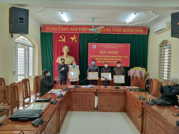 Với thành tích đạt được trong năm, Hội tỉnh Thái Nguyên được Trung ương Hội NNCĐDC/dioxin Việt Nam đã tặng Bằng khen cho 5 tập thể và cá nhân có thành tịch xuất sắc trong công tác Hội. Tỉnh Hội Thái Nguyên tặng giấy khen cho 36 tập thể và 31 cá nhân trong công tác hội năm 2021.