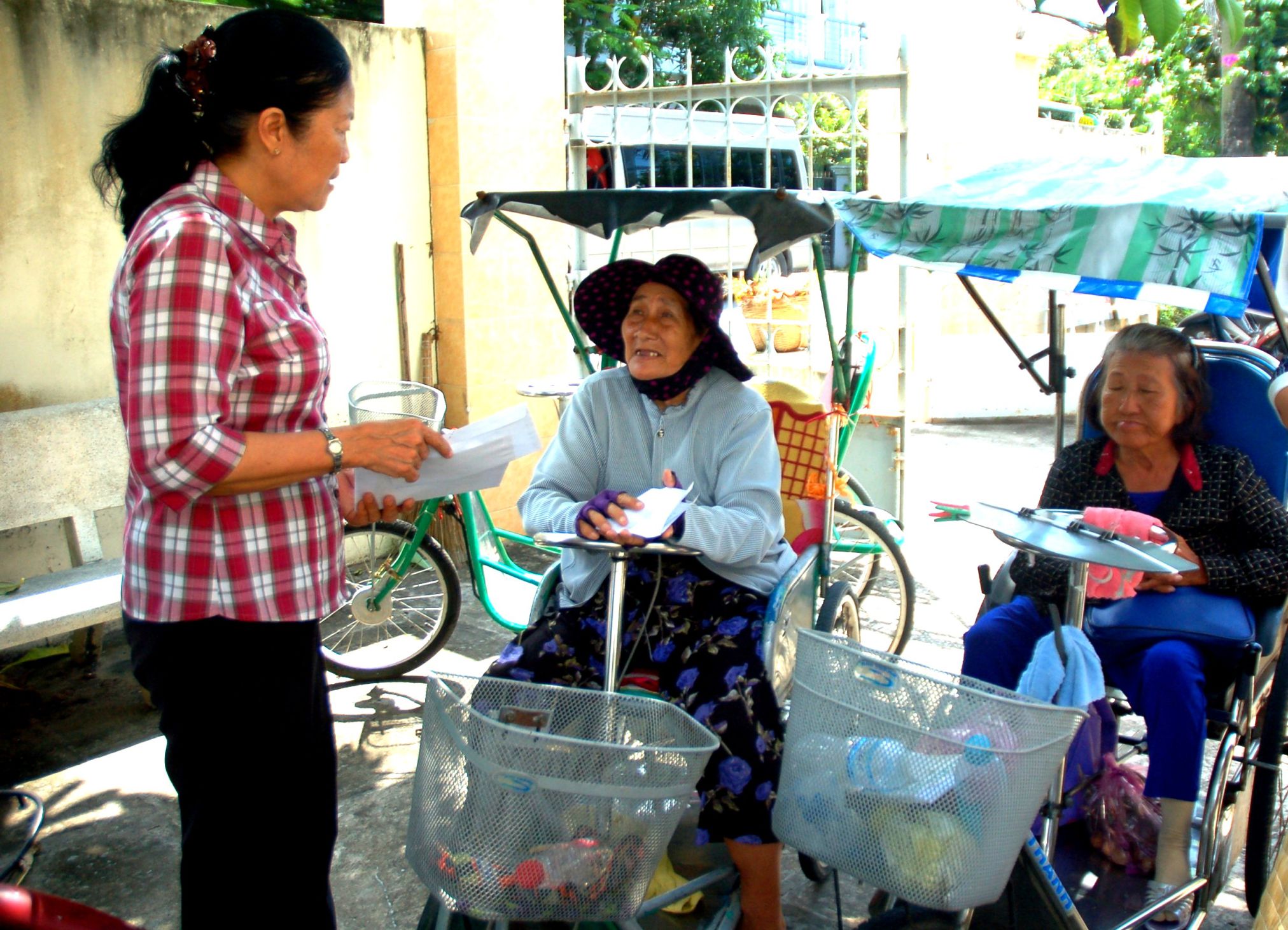 Bà Dương Thị Lệ, Chủ tịch Hội NNCĐDC/dioxin tỉnh Tiền Giang thăm hỏi, tặng quà cho nạn nhân