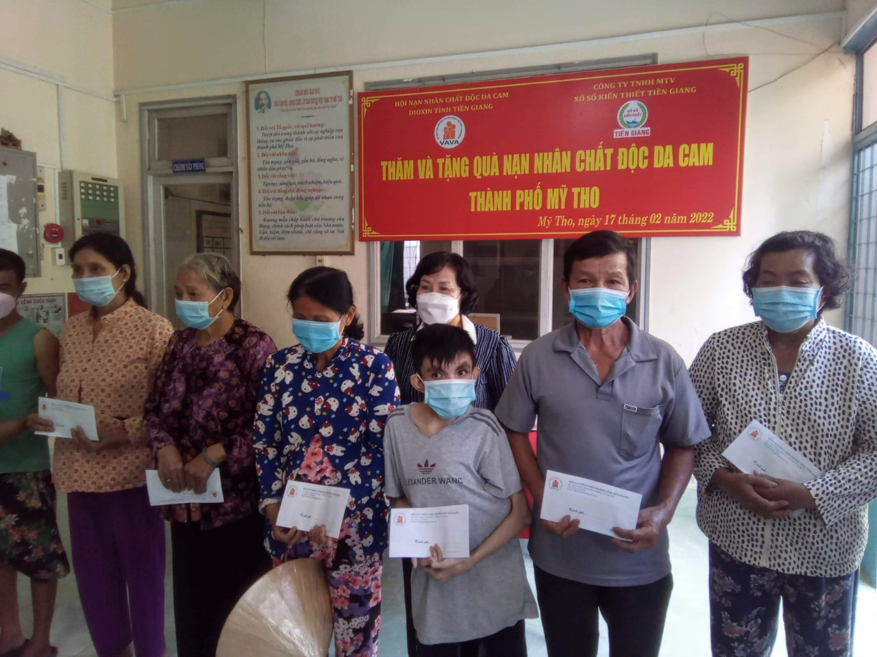 Tại huyện Chợ Gạo và TP Mỹ Tho, mỗi nơi đoàn đã trao 50 suất quà cho nạn nhân chất độc da cam, mỗi suất là 400.000đ tiền mặt, với tổng số tiền là 40 triệu đồng. Nguồn kinh phí trên do Công ty TNHH MTV Xổ số kiến thiết tỉnh Tiền Giang (Cty XSKT TG) hỗ trợ. Trước Tết, Công ty cũng đã hỗ trợ Hội xây dựng 02 căn nhà cho nạn nhân gặp khó khăn về nhà ở (40 triệu/căn) và 63 suất quà cho nạn nhân nghèo, hỗ trợ họ khi xuân về, Tết đến (tổng số tiền 25,2 triệu đồng). Tổng cộng số tiền hỗ trợ trước và sau Tết của Công ty là 145,2 triệu đồng.