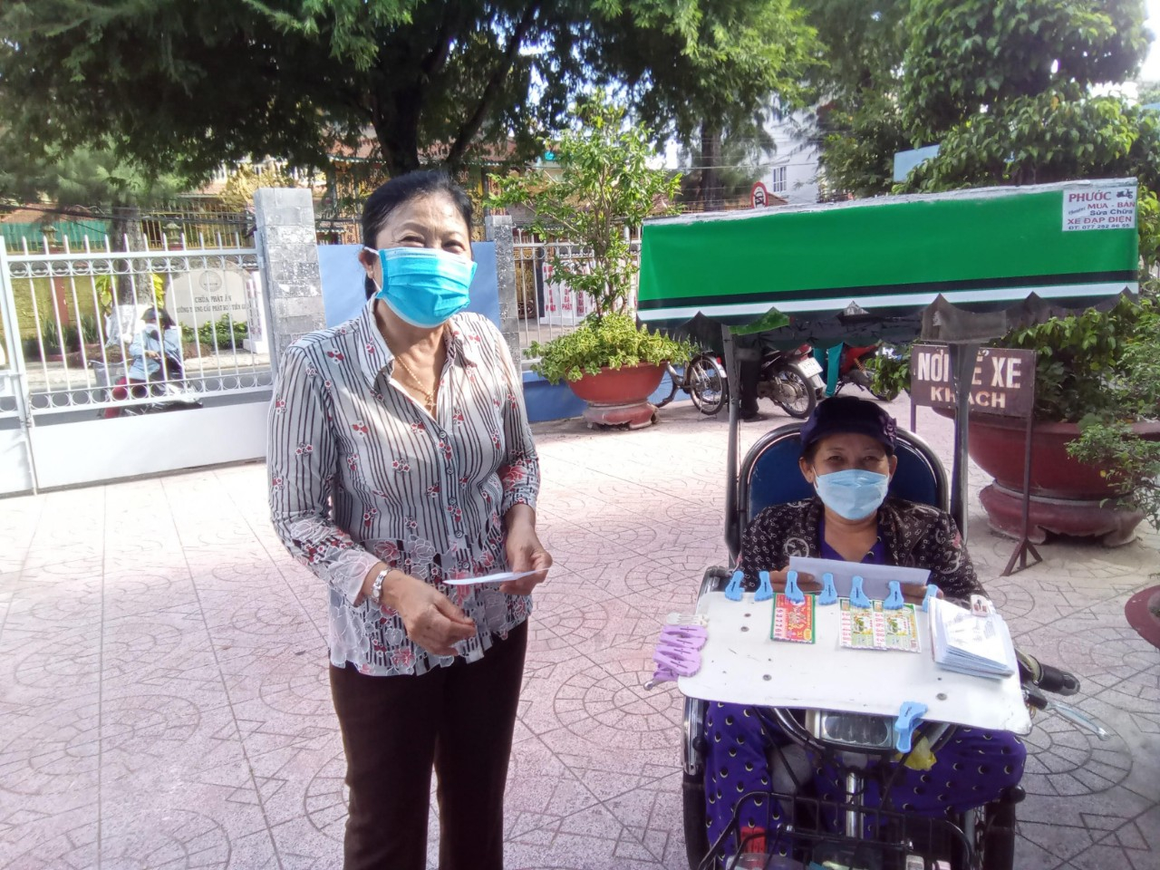 Bà Dương Thị Lệ, tặng quà cho nạn nhân da cam khuyết tật TP Mỹ Tho