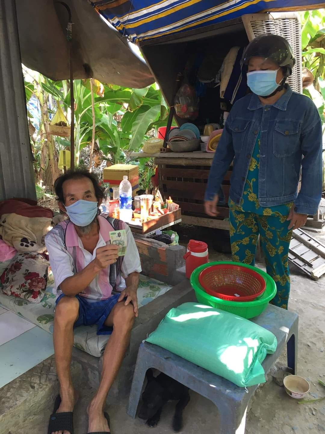 Ông Võ Văn Lưu, Chủ tịch Hội huyện Gò Công Đông tặng quà cho nạn nhân