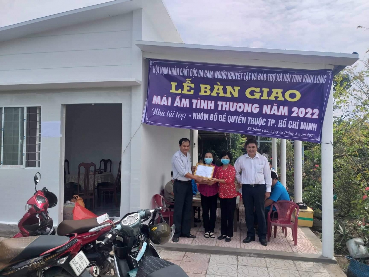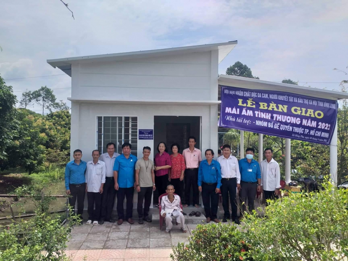 Ngày 08/8/2022, Hội Nạn nhân chất độc da cam/dioxin, Người khuyết tật và Bảo trợ xã hội tỉnh Vĩnh Long phối hợp với Huyện hội Long Hồ, các ban ngành đoàn thể xã Đồng Phú Đồng Phú và nhà tài trợ tổ chức bàn giao nhà tình thương cho ông Trần Văn Đức, sinh năm 1949, cư trú ấp Phú Mỹ, xã Đồng Phú, huyện Long Hồ, ông là người khuyết tật nặng, sống neo đơn, thuộc diện hộ nghèo.