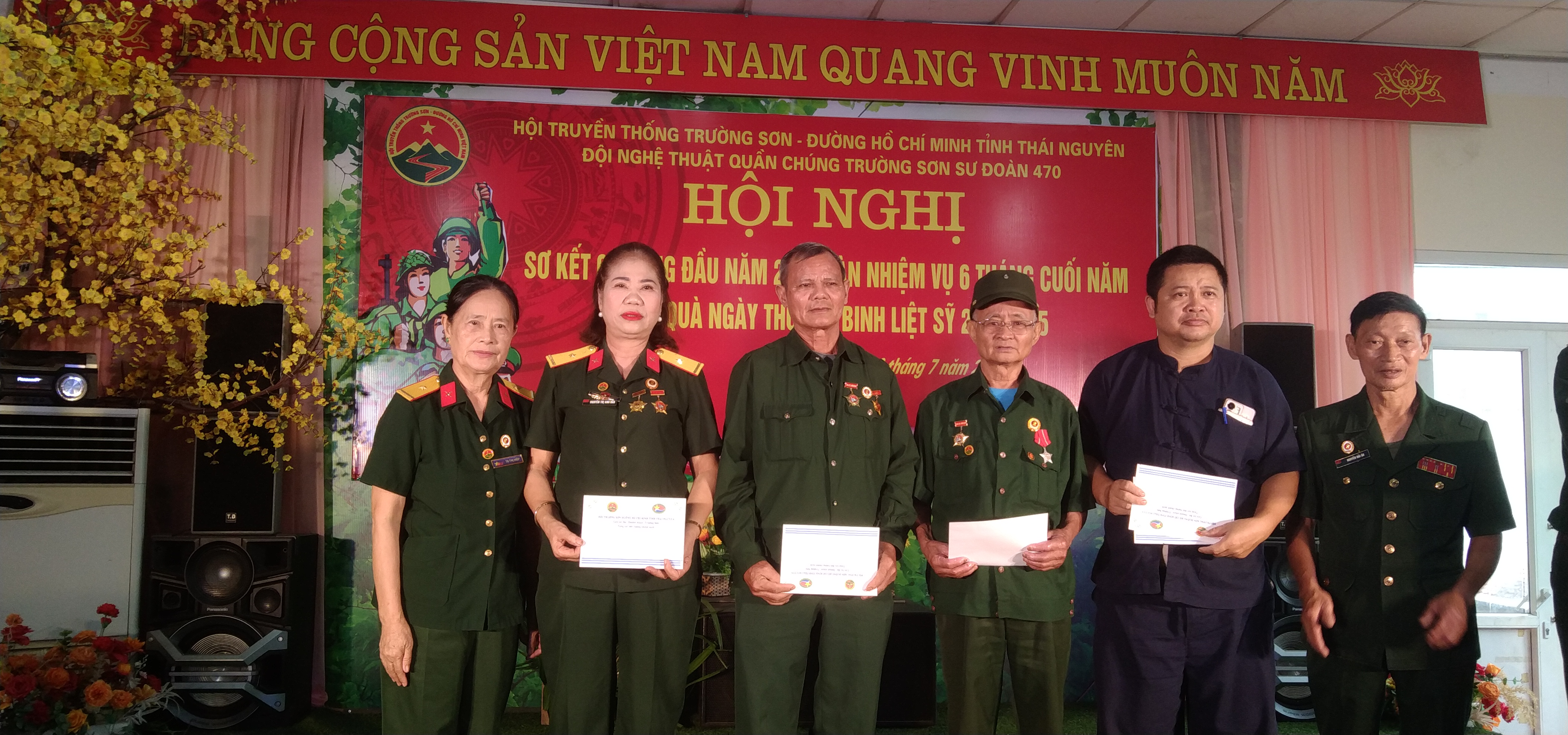 Nhân kỷ niệm 78 năm Ngày Thương binh - Liệt sỹ (27/7/1947-27/7/2025), ngày 20/7/2025, tại Nhà khách Tân Long, Quân khu I, Hội Trường sơn Thái Nguyên và Đội Nghệ thuật Trường Sơn, Sư Đoàn 470 Thái Nguyên (thuộc Câu lạc bộ Văn hóa nghệ thuật (VHNT) Trường Sơn Thái Nguyên) đã tổ chức Sơ kết công tác 6 tháng đầu năm 2025, giao lưu văn nghệ và tặng quà cho các gia đình liệt sỹ, thương binh, nạn nhân chất độc da cam trong đơn vị.