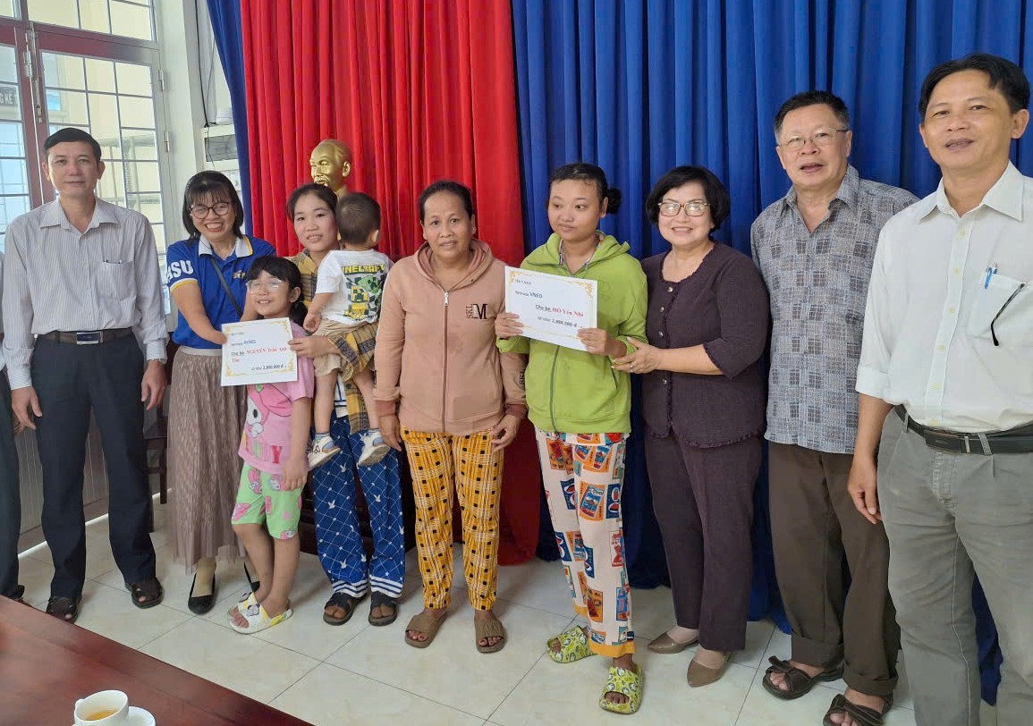 Vừa qua, Hội Bảo trợ trẻ em Việt Nam nhiễm dioxin tại Pháp (VNED) do ông Phan Văn Châu, Tổng Thư ký Hội và bà Trần Thị Mỹ Quyên, đại diện Hội VNED tại Việt Nam, cùng Thường trực Hội NNCĐDC/dioxin tỉnh Đồng Tháp đã đi thăm và tặng quà Quý 3 và 4 năm 2025 cho 30 trẻ em là nạn nhân chất độc da cam trên địa bàn tỉnh Tiền Giang (cũ).