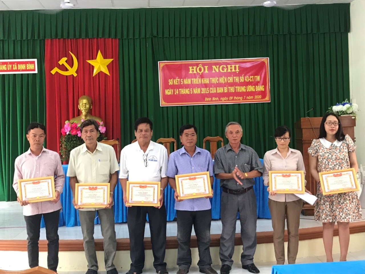 Ủy ban nhân dân xã Định Bình tặng 6 Giấy khen cho cá nhân hoàn thành tốt nhiệm vụ về thực hiện Chỉ thị 43-CT/TW.