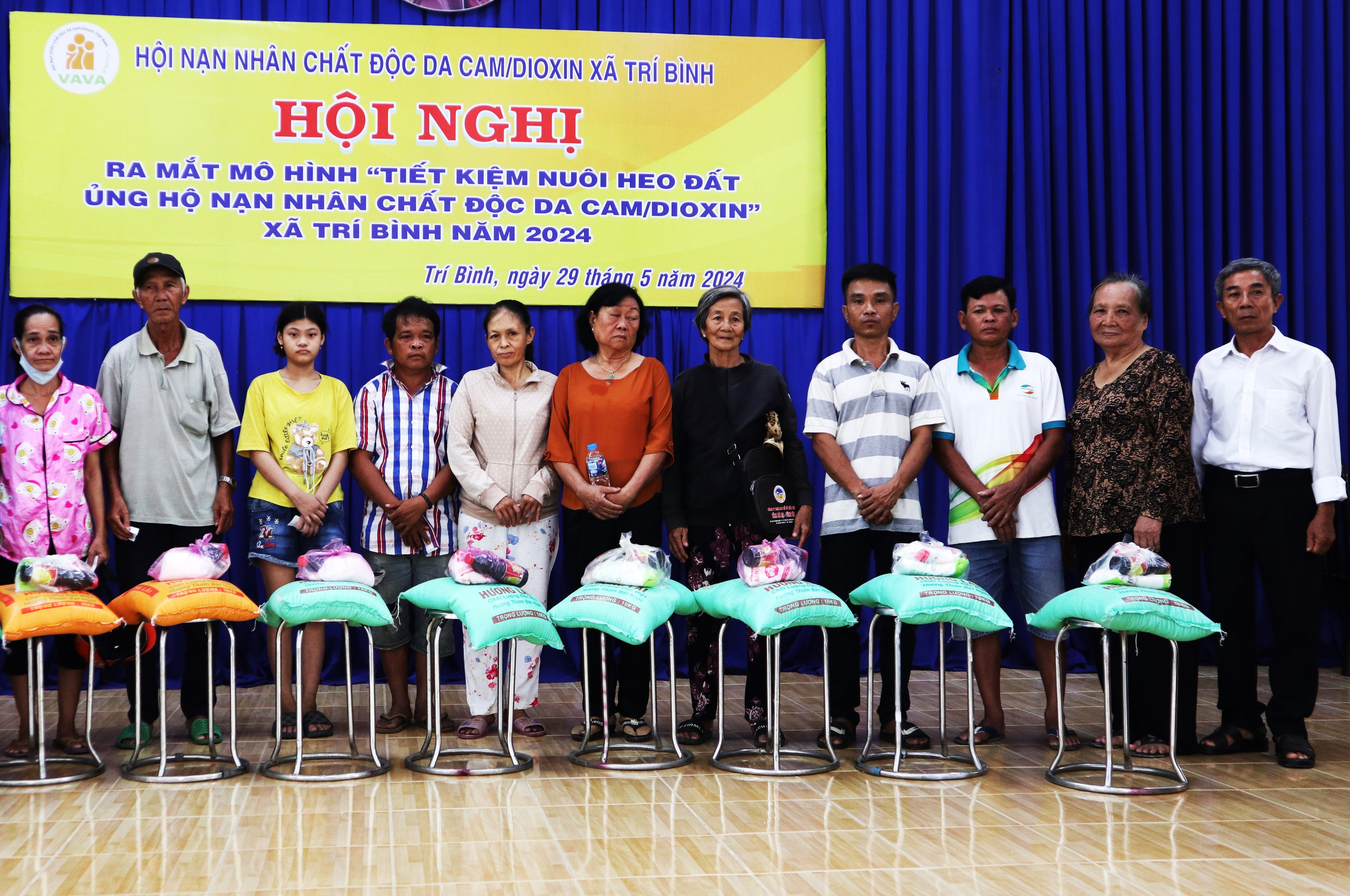 Nhân dịp này, Hội nghị đã trao 10 phần quà cho NNCĐDC có hoàn cảnh khó khăn trong xã, mỗi phẩn quà trị giá 250.000 đồng, do Hội NNCĐDC/dioxin xã Trí Bình vận động được trong thời gian qua.