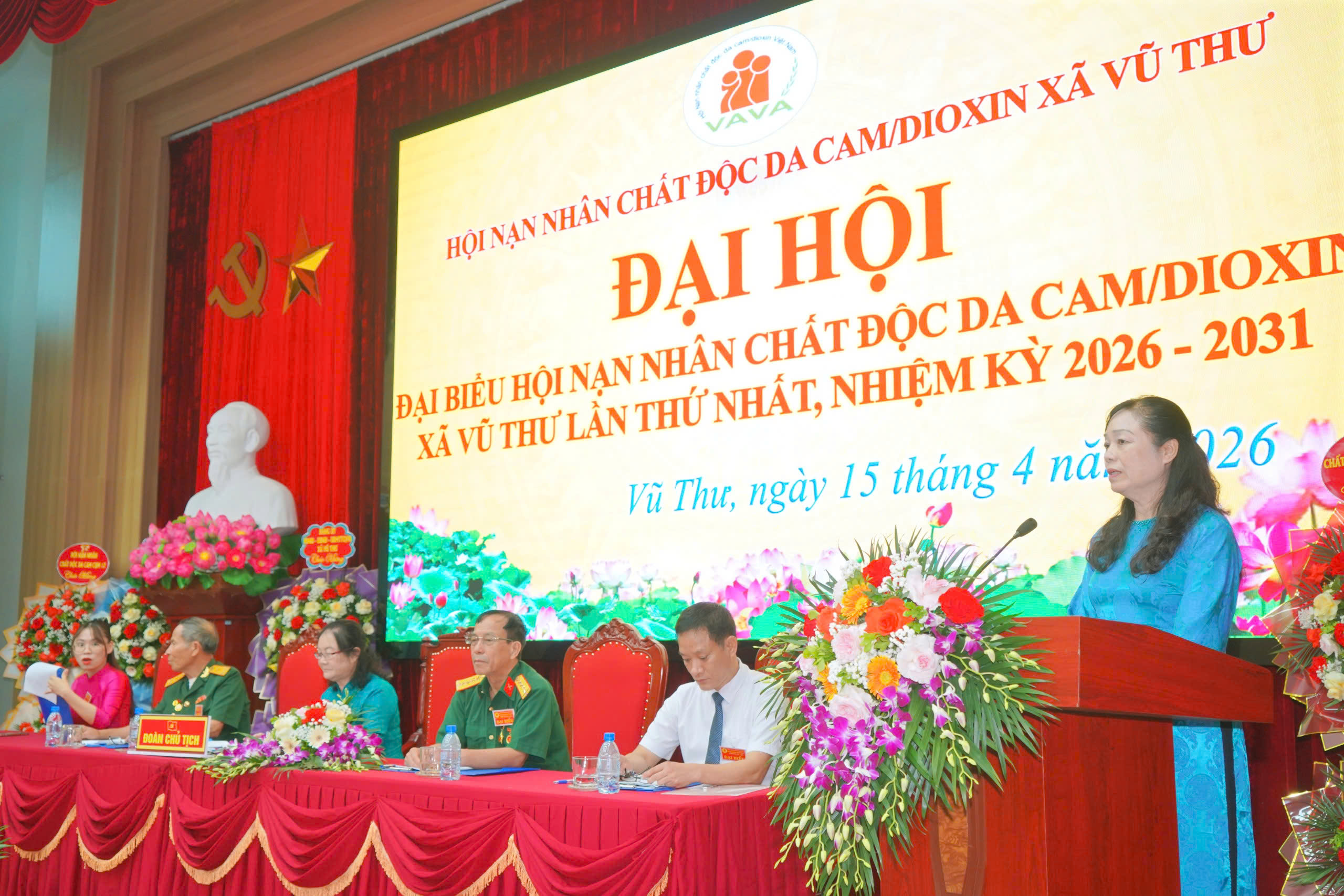 Phát biểu tại đại hội, bà Nguyễn Thúy Hoàn đánh giá cao những thành tích Hội xã Vũ Thư đã đạt được trong nhiệm kỳ vừa qua bà mong muốn trong nhiệm kỳ 2026-2031 Hội cần tập trung xây dựng Hội vững mạnh toàn diện, đổi mới phương pháp hoạt động cho phù hợp với quy mô địa giới hành chính xã mới, chăm sóc nạn nhân theo hướng thiết thực nhằm nâng cao đời sống nạn nhân trên địa bàn.