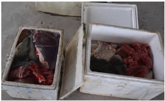 Số nội tạng bốc mùi hôi thối đang trên đường vận chuyển đi tiêu thụ