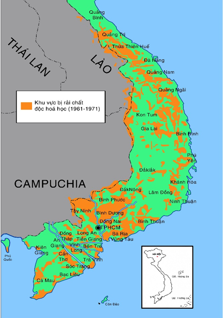 | Bản đồ các khu vực bị rải chất độc hóa học trong chiến tranh. Ảnh tư liệu |