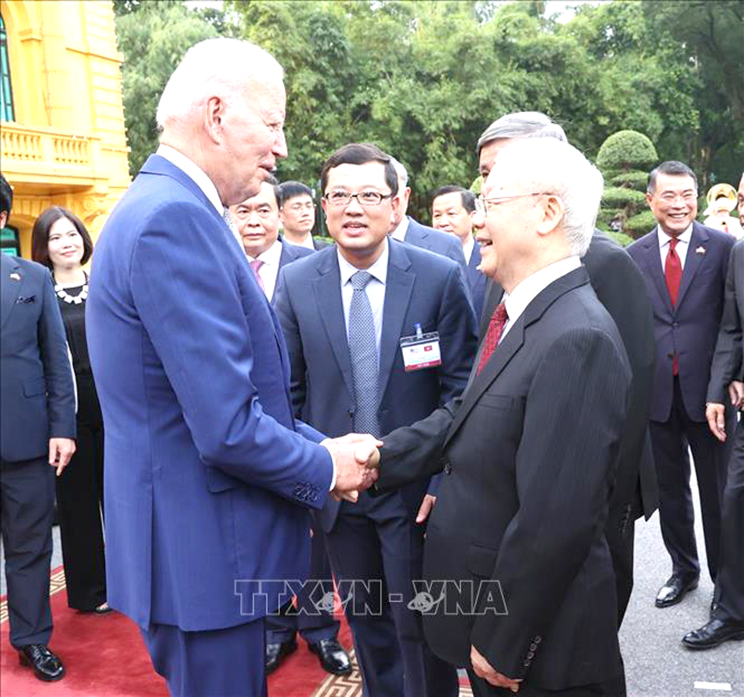 Đây là lần đầu tiên một Tổng thống Hoa Kỳ thăm cấp Nhà nước theo lời mời của Tổng Bí thư Đảng Cộng sản Việt Nam. Chuyến thăm diễn ra đúng dịp kỷ niệm 10 năm hai nước xác lập Quan hệ Đối tác toàn diện, nhấn mạnh ý nghĩa quan trọng của việc Tổng Bí thư Nguyễn Phú Trọng và Tổng thống Joe Biden tuyên bố nâng cấp quan hệ Việt Nam - Hoa Kỳ lên Đối tác Chiến lược Toàn diện, phản ánh tầm vóc của quan hệ, phù hợp với lợi ích của nhân dân hai nước, đóng góp tích cực vào hòa bình, ổn định, hợp tác, phát triển tại khu vực và trên thế giới.
