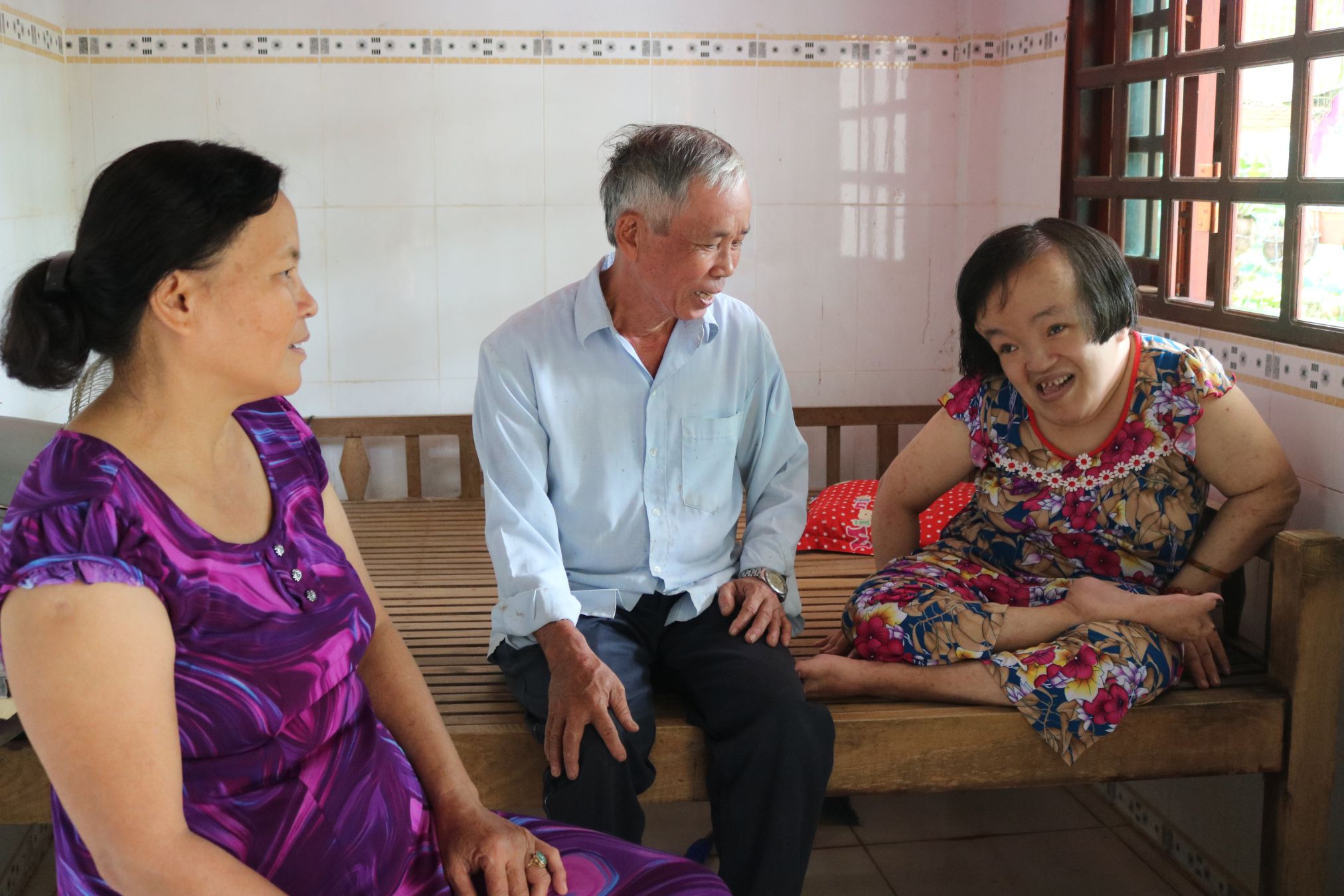 Ông Trần Thanh Nhờ, Chủ tịch Hội NNCĐDC/dioxin xã Mỹ Long, huyện Cai Lậy, thăm hỏi NNCĐDC.
