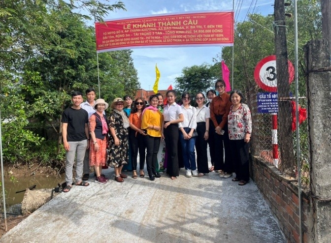 Cùng ngày Hội NNCĐDC/dioxin-BVQTE huyện Ba Tri tổ chức khánh thành cầu nông thôn ở ấp 3, xã Mỹ Thạnh.