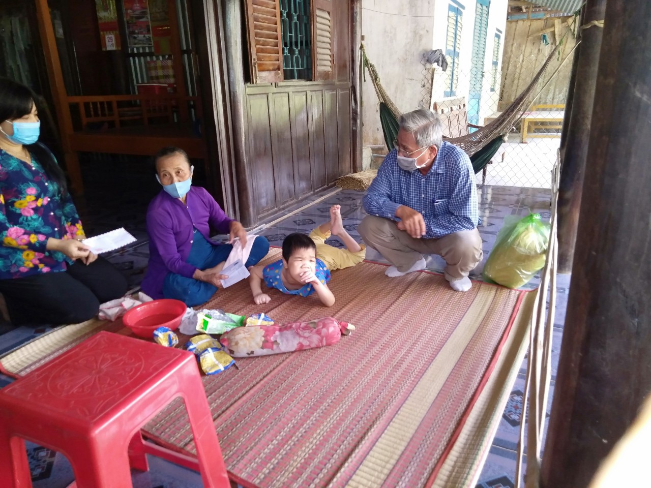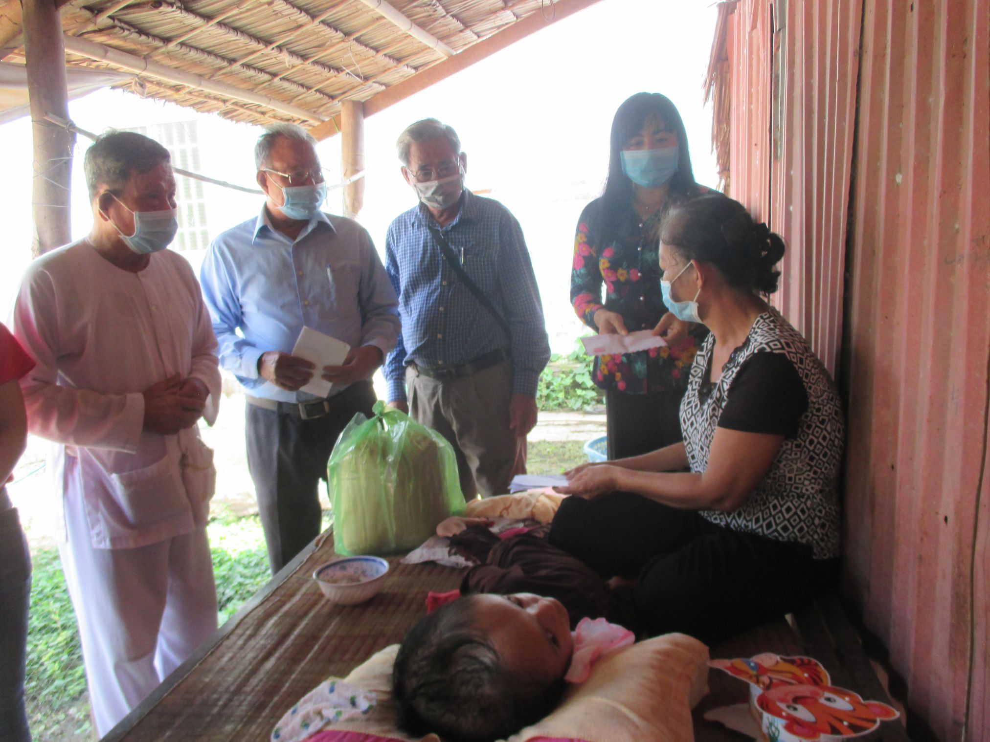 Thấu hiểu sự khó khăn đó, Hội NNCĐDC/dioxin tỉnh Sóc Trăng phối hợp với Câu Lạc bộ Thành Tâm, huyện Cù Lao Dung và Thánh Thất Cao Đài, xã An Thanh Nhì đã đến thăm 03 NNCĐDC huyện Cù Lao Dung với số tiền hỗ trợ là 10.900.000đ và 30 kg gạo (trong đó Tỉnh hội 2.000.000đ, Câu lạc bộ Thành Tâm 7.100.000đ và 30 kg gạo, Huyện hội 1.200.000đ và Thánh thất Cao Đài xã An Thạnh Nhì 600.000đ).