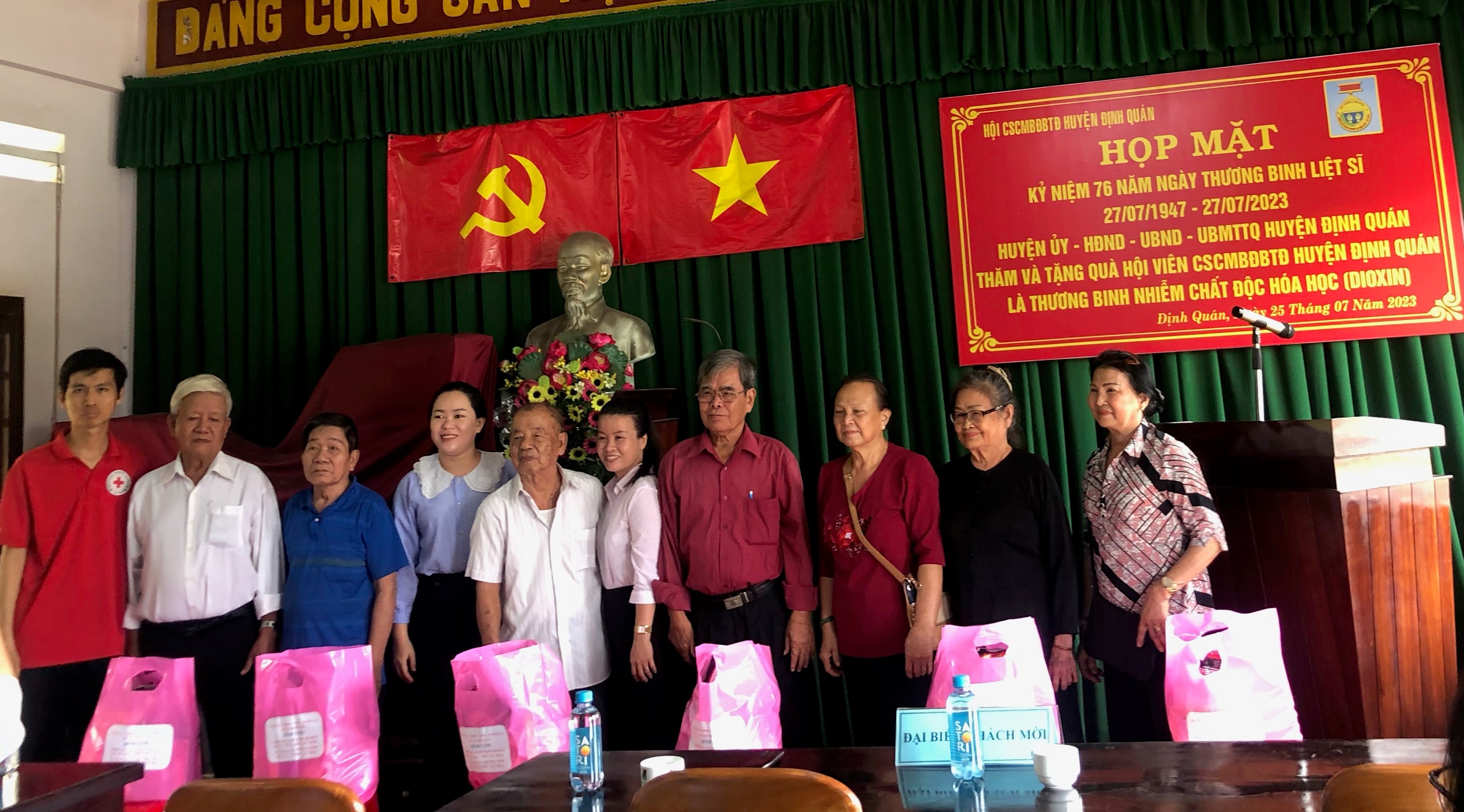 Tri ân các anh hùng, thương binh, liệt sỹ, nạn nhân chất độc da cam đã cống hiến cho độc lập tự do của dân tộc, bảo vệ toàn vẹn lãnh thổ của Tổ quốc, nhân dịp 76 năm ngày Thương binh L iệt sỹ ( 27/7/1947-27/7/2023 ), Huyện uỷ, Ủy ban nhân dân, Ủy ban Mặt trận Tổ quốc huyện Định Quán đã tổ chức thăm và tặng quà cho các đồng chí cựu tù chính trị cách mạng, bị địch bắt , tù đày là thương binh, bệnh binh , người nhiễm chất độc hoá học trong kháng chiến chống Mỹ.