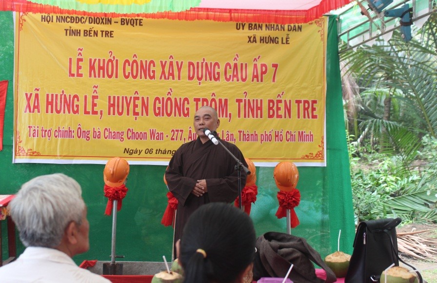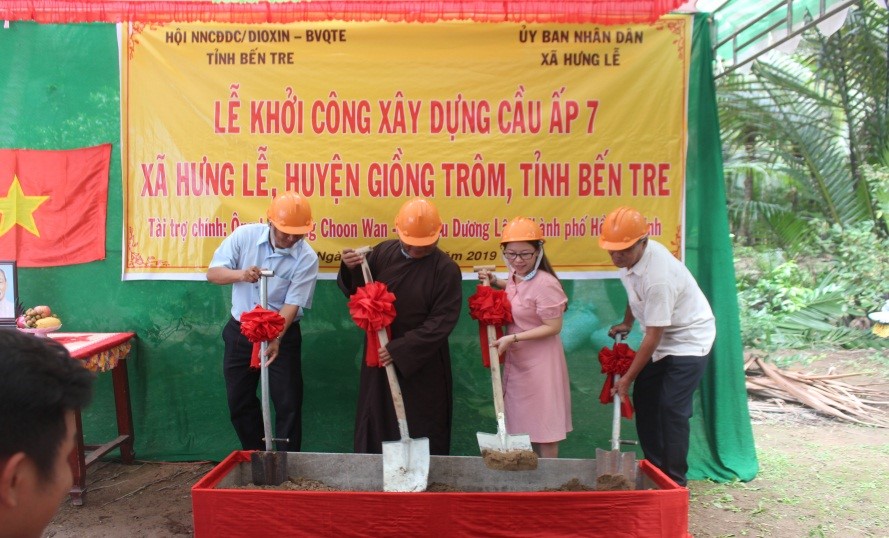 Nhân kỷ niệm 89 năm Ngày thành lập Mặt trận Dân tộc thống nhất Việt Nam (18/11/1930 - 18/11/2019), ngày 6/112/2019, Hội NNCĐDC/dioxin- Bảo vệ quyền trẻ em tỉnh Bến Tre phối hợp với chính quyền địa phương tại xã Hưng Lễ, huyện Giồng Trôm tổ chức lễ khởi công cầu ấp 7, xã Hưng Lễ, huyện Giồng Trôm. Đến dự có bà Võ Thị Thủy- Phó Trưởng Ban Dân vận Tỉnh Ủy; bà Trịnh Thị Thanh Bình- Phó Chủ tịch Hội NNCĐDC/dioxin- Bảo vệ quyền trẻ em tỉnh Bến Tre; Thượng Tọa Thích Thiện Tâm- Trụ trì Chùa Quan Âm Tự ở quận Bình Thạnh; bà Nguyễn Thị Thùy Lan, huyện Nhà Bè, thành phố Hồ Chí Minh đại diện nhà tài trợ cùng với chính quyền địa phương và bà con nhân dân xã Phú Lễ.