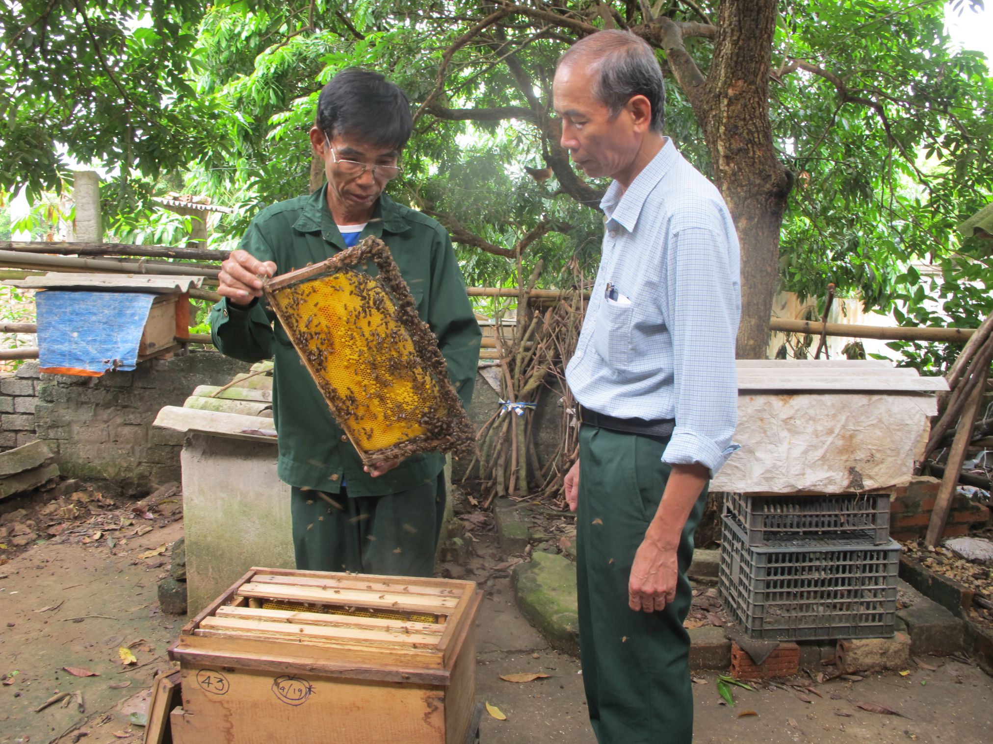 Chủ tịch Hội NNCĐDC/dioxin huyện Lê Đình Thống thăm mô hình nuôi ong mật của gia đình thương binh, nạn nhân Trương Quang Ân