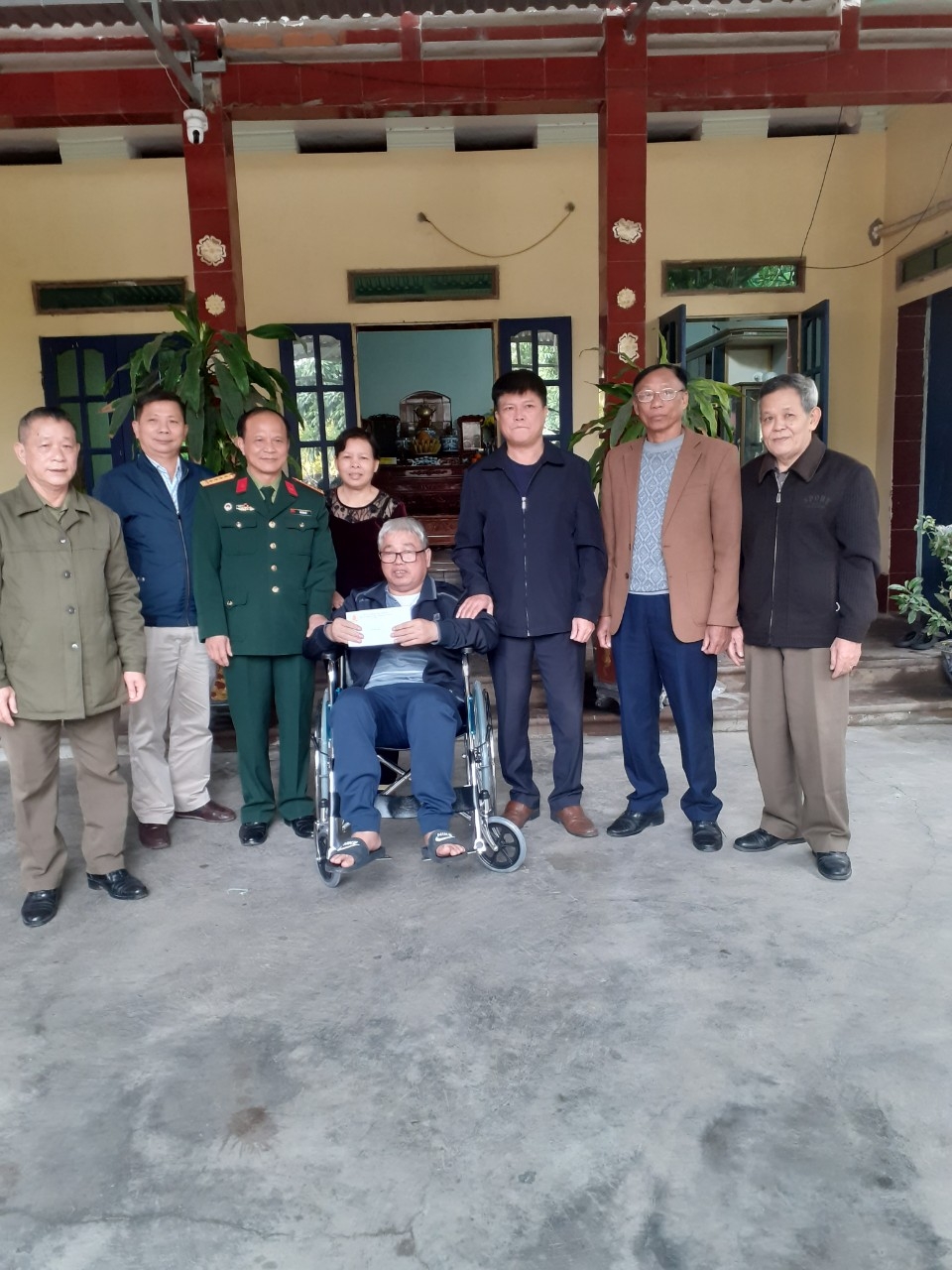 Ông Vũ Xuân Thu, Chủ tịch Hội NNCĐDC/dioxin tỉnh Hải Dương tặng xe lăn và quà Tết cho NNCĐDC huyện Bình Giang
