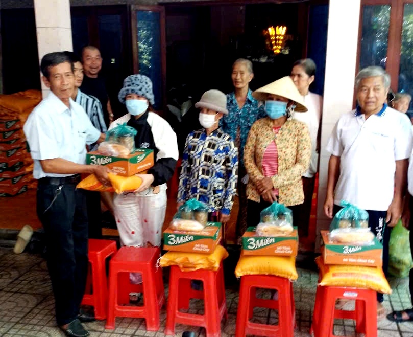 Ông Nguyễn Văn Ân, Chủ tịch Huyện hội Cai Lậy thăm hỏi và tặng quà cho NNCĐDC xã Mỹ Long