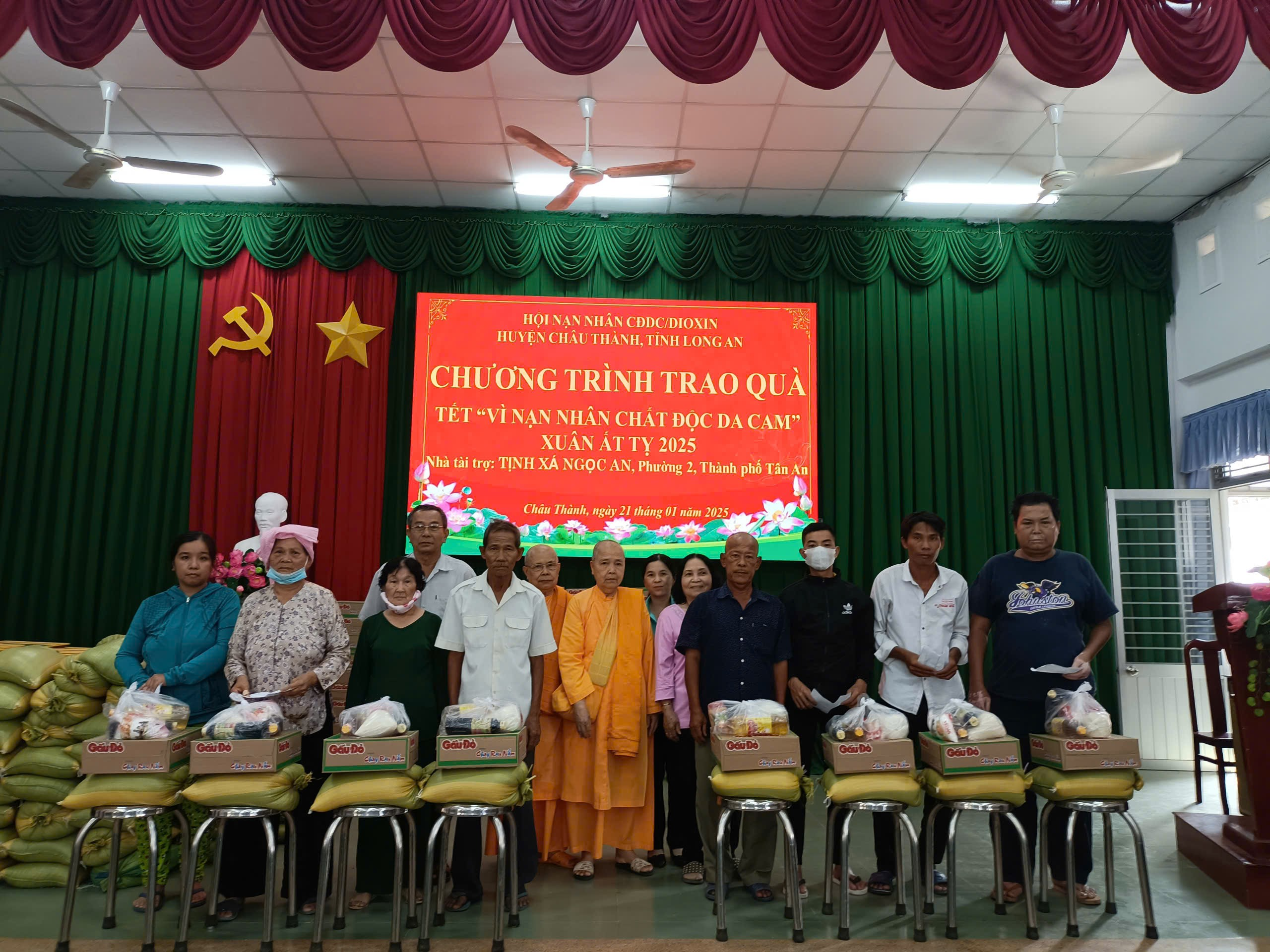 Sáng 21/1/2025, Hội NNCĐDC/dioxin huyện Châu Thành, tỉnh Long An tổ chức Chương trình Trao quà Tết “Vì nạn nhân chất độc da cam” xuân Ất Tỵ 2025. Đây là số tiền, quà do Ni sư Ánh Liên, trụ trì Tịnh xá Ngọc An làm Trưởng đoàn trao tặng 100 phần quà cho nạn nhân chất độc da cam, người nghi bị phơi nhiễm chất độc hóa học, người khuyết tật trên địa bàn huyện; mỗi phần quà trị giá 500 ngàn đồng, với tổng số tiền 50 triệu đồng.