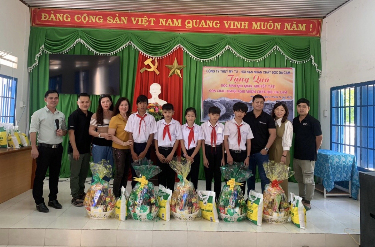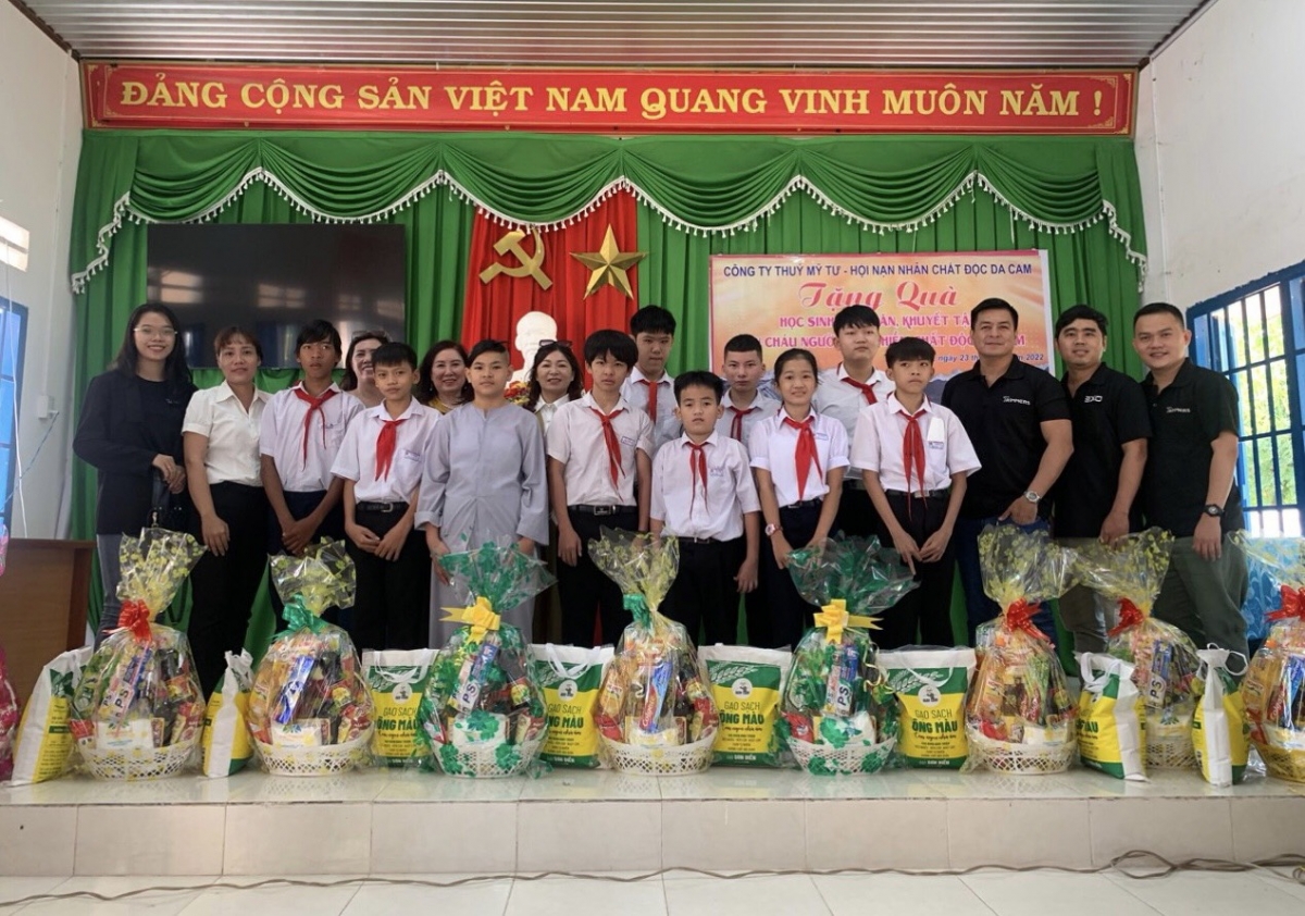 Vừa qua tại 2 Trường: Trung học sơ sở Nguyễn Du và Trường Tiểu học Tôn Đức Thắng thuộc huyện Đức Linh, tỉnh Bình Thuận. Công ty Thúy Mỹ Tư (Bình Dương) do ông Michael; bà Lê Thị Hồng Thúy làm đại điện phối hợp cùng Hội NNCĐDC/dioxin huyện Đức Linh trao 30 suất quà, mỗi suất 500.000 đồng, cho 20 cháu học sinh là con, cháu của nạn nhân và 10 nạn nhân chất độc da cam có hoàn cảnh kinh tế khó khăn trên địa bàn huyện.