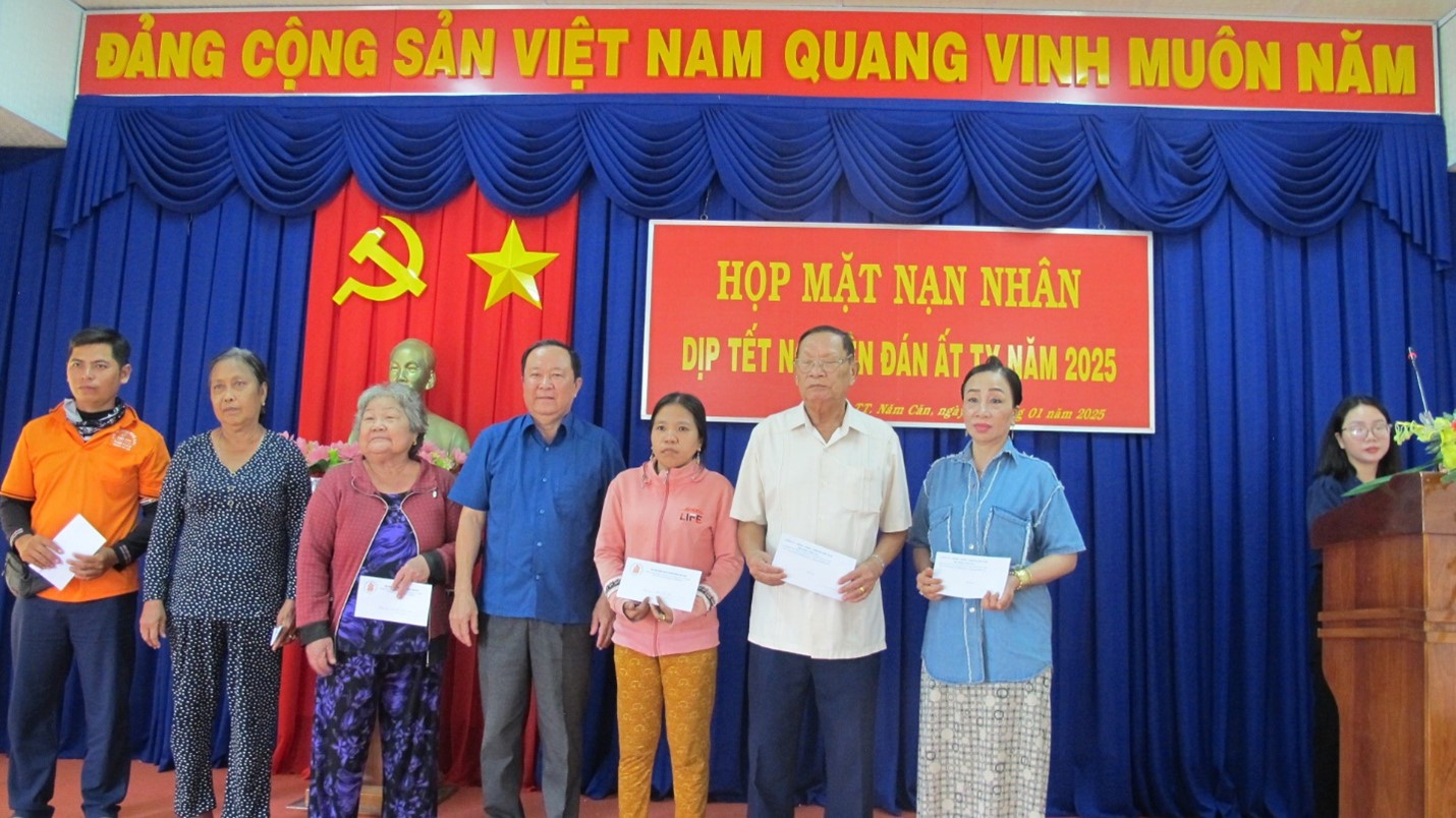 Thực hiện kế hoạch tổ chức các hoạt động mừng Đảng, mừng xuân Ất Tỵ năm 2025 của UBND huyện Năm Căn, tỉnh Cà Mau, ngày 8/1/2025, Hội NNCĐDC/dioxin huyện Năm Căn đã tổ chức họp mặt NNCĐDC. Dự buổi họp mặt có: ông Đặng Văn Mỹ, Ủy viên BCHTW Hội NNCĐDC/dioxin Việt Nam, Chủ tịch Hội NNCĐDC/dioxin tỉnh Cà Mau; ông Nguyễn Văn Khoa, Huyện ủy viên, Phó trưởng Ban Dân vận huyện ủy; Ông Nguyễn Minh Sơn, HUV, BT Đảng ủy thị trấn Năm Căn cùng hơn 50 nạn nhân.