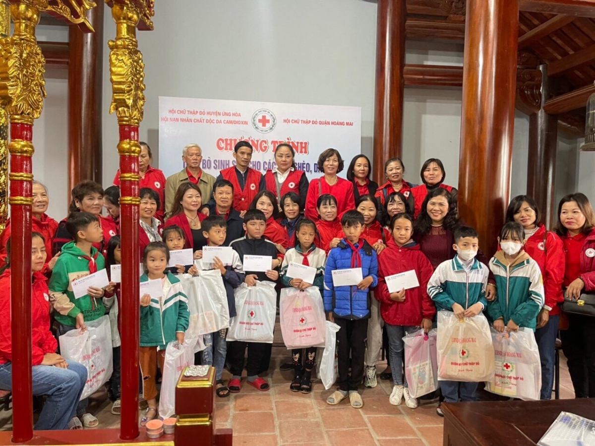 Hội Chữ thập đỏ quận Hoàng Mai đã trao tặng 02 con bò sinh sản cho 02 gia đình nạn nhân chất độc da cam, trị giá 30 triệu đồng, tạo cho các gia đình có “cần câu” để phát triển kinh tế gia đình, ổn định cuộc sống, vươn lên thoát nghèo và trao tặng 15 suất quà cho 15 cháu của nạn nhân chất độc da cam có hoàn cảnh khó khăn với tổng số tiền là 20.000.000đ. Món quà vô cùng có ý nghĩa đó đã tiếp thêm nghị lực vươn lên trong học tập khi các cháu đã bắt đầu bước vào năm học mới./.