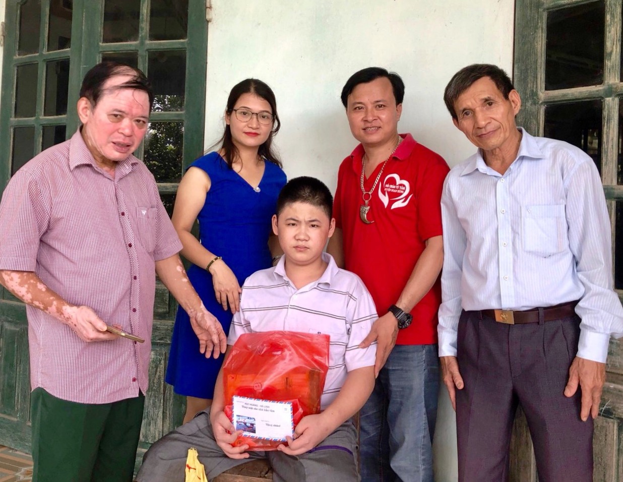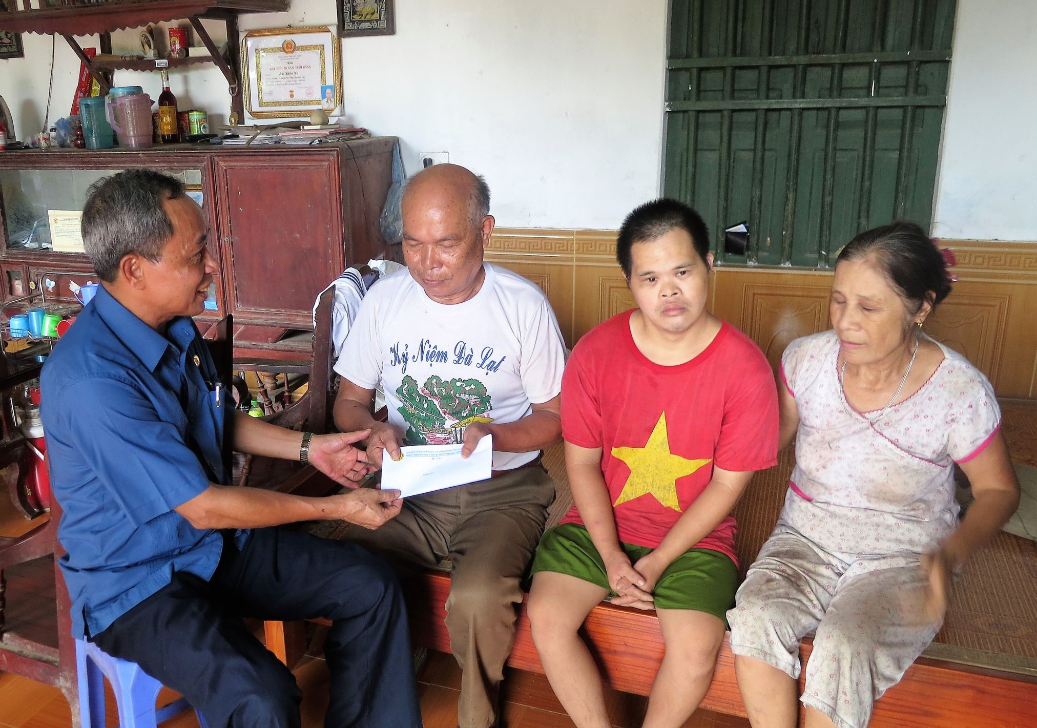 Ông Phạm Ngọc Quỳnh, Chủ tịch Hội tỉnh Phú Thọ thăm, trao quà cho một gia đình nạn nhân