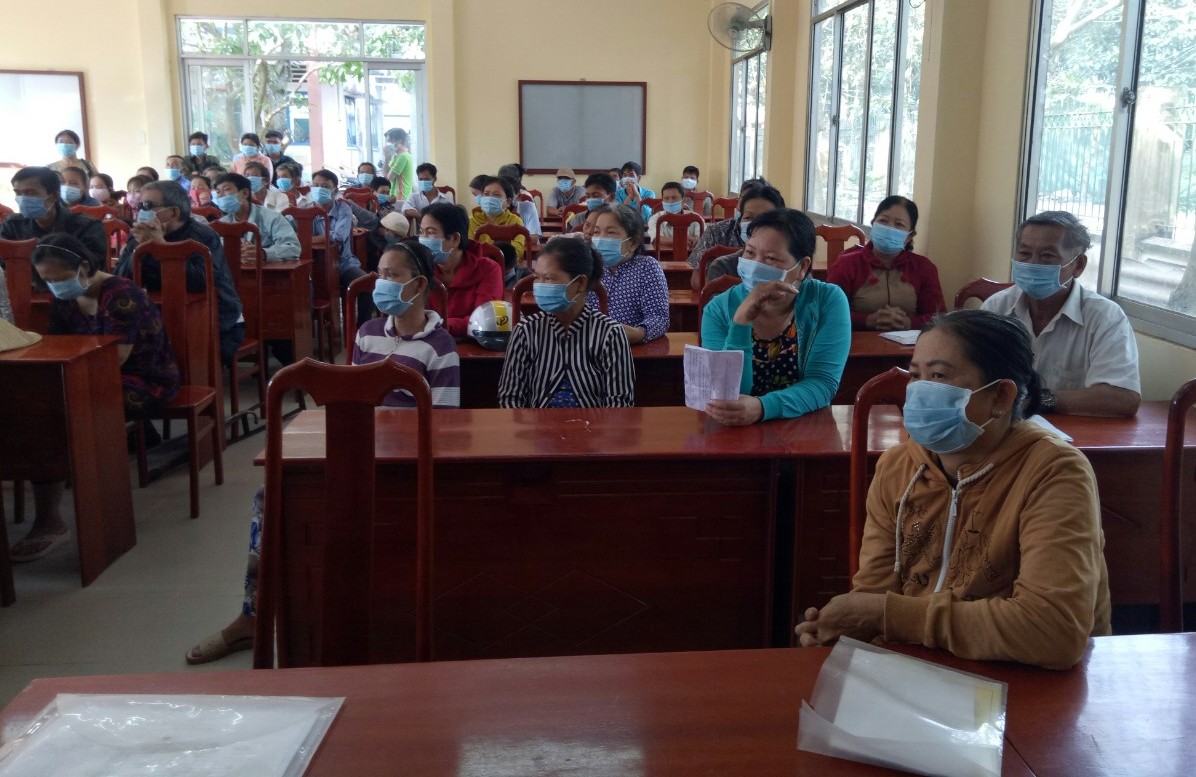 NNCĐDC, NKT, người nghèo tới nhận quà tại xã Vĩnh Thạnh