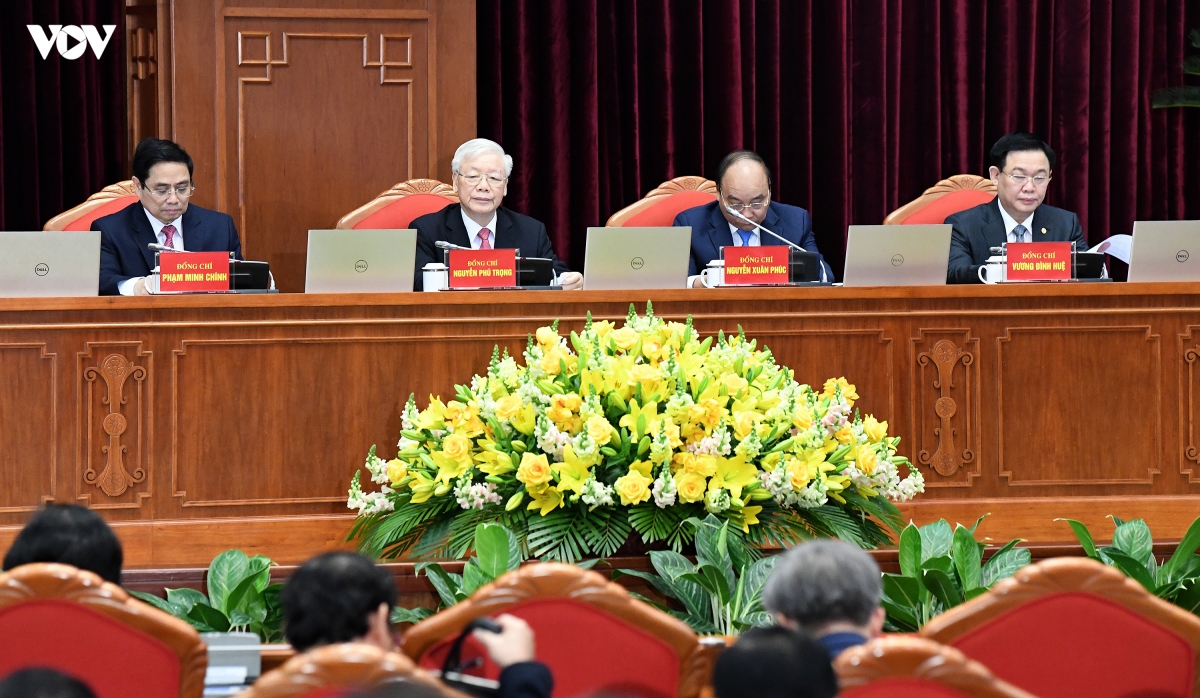 "Với tinh thần tiếp tục đổi mới, cải tiến cách ban hành Nghị quyết, đi đôi với việc tăng cường chỉ đạo tổ chức và kiểm tra việc thực hiện, đề nghị Trung ương tập trung thảo luận, lựa chọn đưa vào Chương trình những vấn đề lớn, quan trọng và cần thiết nhất, phù hợp với chức năng, nhiệm vụ và thẩm quyền của Ban Chấp hành Trung ương; bảo đảm sự gắn kết chặt chẽ và đồng bộ các nhiệm vụ phát triển kinh tế - xã hội là trung tâm; xây dựng Đảng là then chốt; phát triển văn hoá là nền tảng tinh thần; bảo đảm quốc phòng, an ninh là trọng yếu, thường xuyên; thực hiện thắng lợi mục tiêu tổng quát và 6 nhiệm vụ trọng tâm trong 5 năm tới mà Đại hội XIII đã xác định. Ưu tiên cho những vấn đề bức xúc, khó khăn cần tháo gỡ, giải quyết; những khâu cần đột phá, các nhiệm vụ trọng yếu, như: Tiếp tục đẩy mạnh xây dựng, chỉnh đốn đảng, xây dựng Nhà nước pháp quyền xã hội chủ nghĩa và hệ thống chính trị toàn diện, trong sạch, vững mạnh. Xây dựng tổ chức bộ máy của hệ thống chính trị tinh gọn, hoạt động hiệu lực, hiệu quả. Tiếp tục đẩy mạnh đấu tranh phòng, chống tham nhũng, lãng phí, quan liêu, tiêu cực; thực hiện có hiệu quả ba đột phá chiến lược; đổi mới mô hình tăng trưởng, cơ cấu lại nền kinh tế; quản lý chặt chẽ, sử dụng hợp lý, hiệu quả đất đai, tài nguyên, bảo vệ, cải thiện môi trường; kiên quyết, kiên trì đấu tranh bảo vệ vững chắc độc lập, chủ quyền, thống nhất và toàn vẹn lãnh thổ của Tổ quốc, đồng thời giữ vững môi trường hoà bình, ổn định để phát triển đất nước, chủ động và tích cực hội nhập quốc tế..."- Tổng Bí thư, Chủ tịch nước nhấn mạnh.