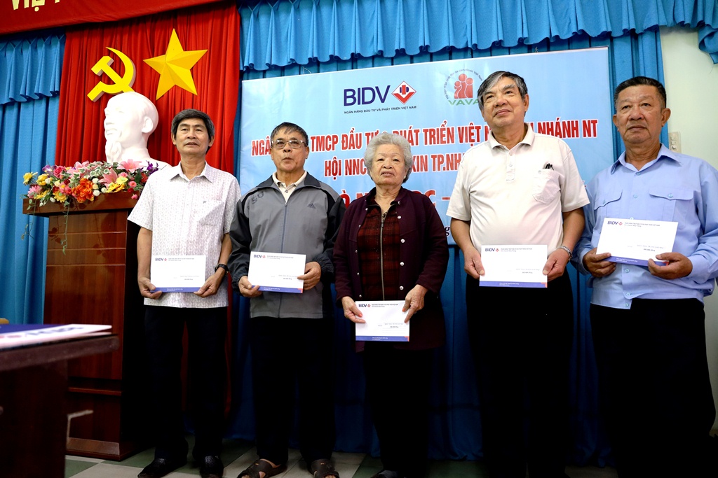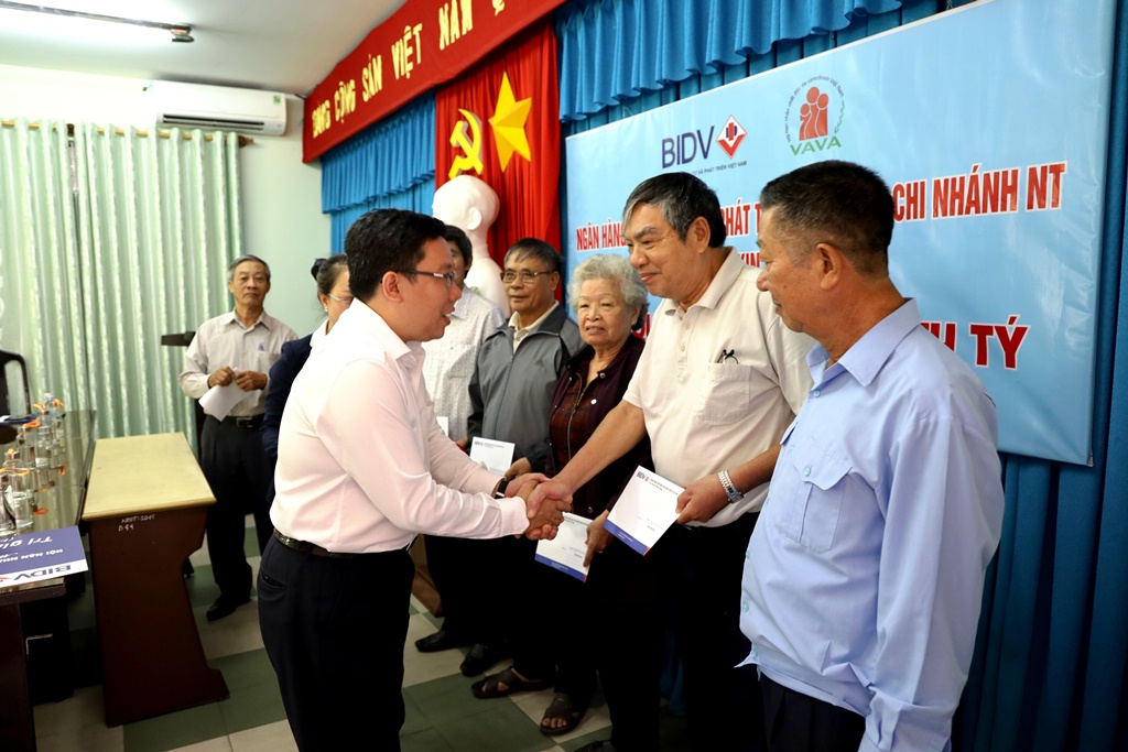 Ngày 24/12, tại trụ sở Hội NNCĐDC/dioxin TP. Nha Trang, Ngân hàng Thương mại Cổ phần Đầu tư và Phát triển Việt Nam (BIDV) Chi nhánh Nha Trang phối hợp với Hội NNCĐDC/dioxin TP. Nha Trang tổ chức trao 74 suất quà Tết cho các NNCĐDC trên địa bàn, trong đó có 73 suất (mỗi suất trị giá 300.000 đồng và 1 suất trị giá 3,1 triệu đồng).
