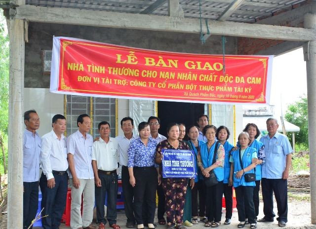 Nhà “Tình thương” trao tặng bà Lê Thu Hà là NNCĐDC trị giá 80 triệu đồng do Công ty cổ phần Bột thực phẩm Tài Ký tài trợ 50 triệu đồng, còn lại do gia đình và bà con đóng góp.