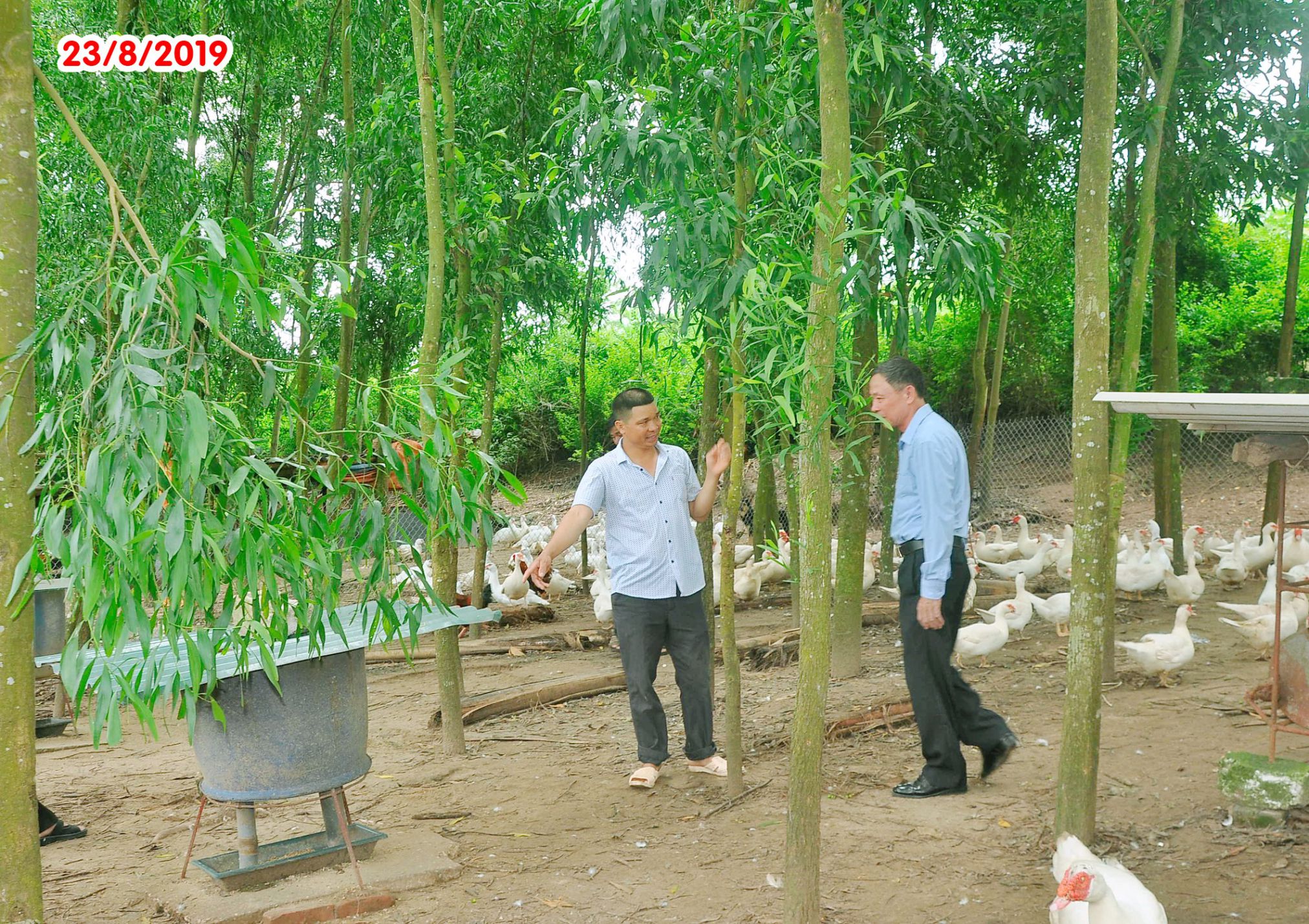 Đồng chí Nguyễn Tuấn Bằng, Chủ tịch Hội NNCĐDC/dioxin huyện Chí Linh thăm trang trại của Hội viên Phạm Văn Dũng.