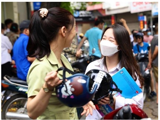 | Niềm vui của thí sinh và phụ huynh khi hoàn thành bài thi. |