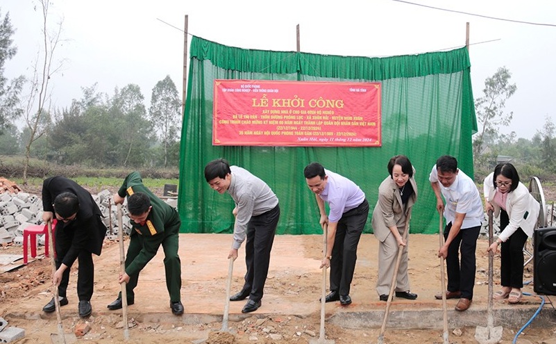 Tại huyện Nghi Xuân, sáng 11/12, Ủy ban MTTQ huyện Nghi Xuân phối hợp với Tập đoàn Công nghiệp Viễn thông Quân đội tổ chức khởi công xây dựng nhà ở cho gia đình bà Lê Thị Vân (SN 1960) ở thôn Dương Phòng Lục, xã Xuân Hải. Riêng Tập đoàn Công nghiệp Viễn thông Quân đội đã hỗ trợ kinh phí 50 triệu đồng, Quỹ vì người nghèo huyện 20 triệu đồng xây dựng nhà ở mới, giúp bà Vân sớm ổn định cuộc sống. Công trình nhà tình nghĩa của bà Lê Thị Vân được thiết kế mái lợp tôn, có diện tích khoảng 50m2 với tổng kinh phí hơn 200 triệu đồng. Dự kiến ngôi nhà hoàn thành đưa vào sử dụng sau 45 ngày thi công.