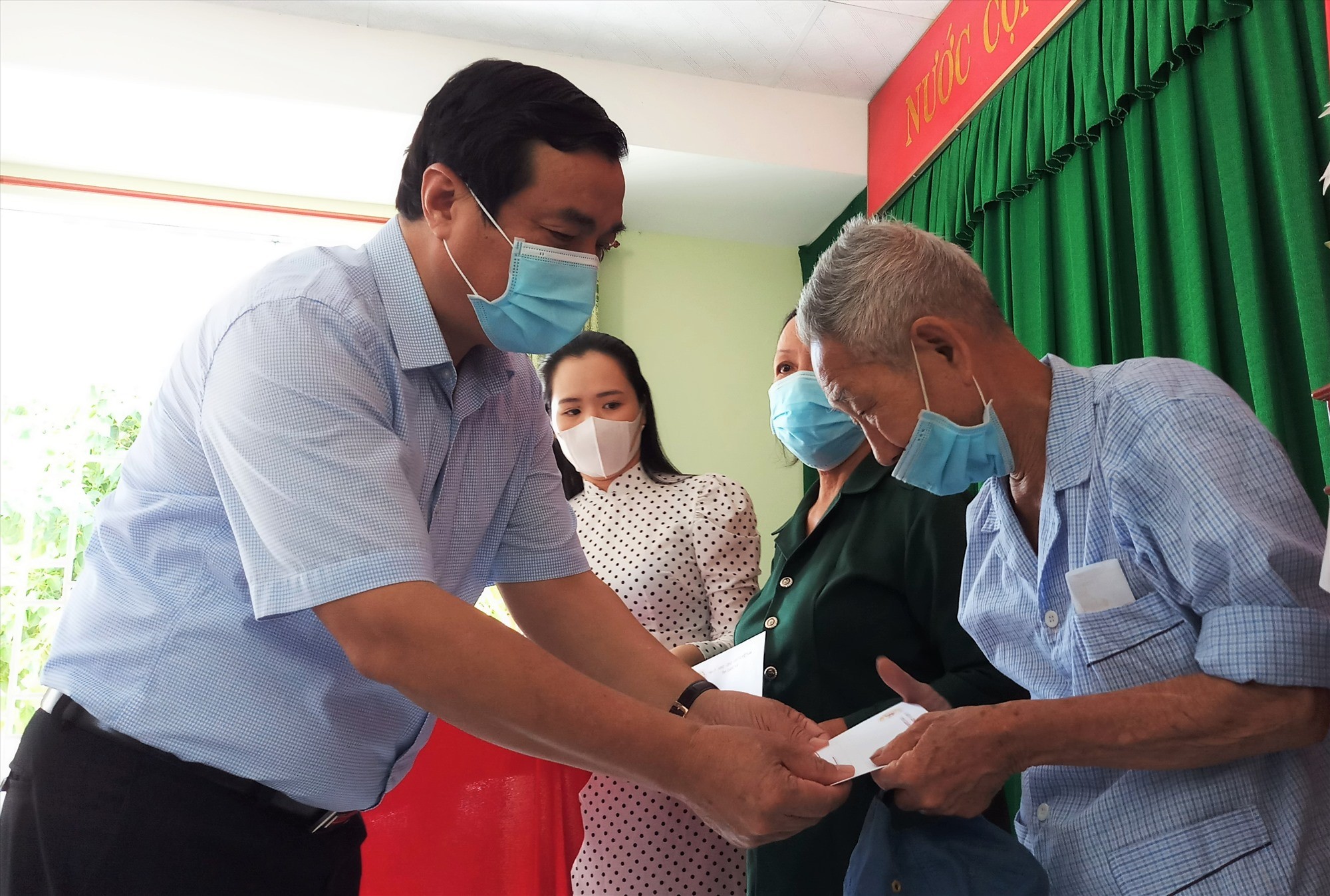 Bí thư Tỉnh ủy Phan Việt Cường trao quà động viên các nạn nhân da cam khó khăn của TP.Tam Kỳ.