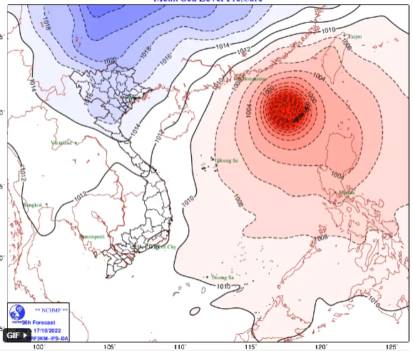 Trên biển, ngày và đêm 17/10 ở vịnh Bắc Bộ, vùng biển Quảng Trị đến Quảng Ngãi có gió Đông Bắc cấp 6, giật cấp 7-8, biển động. Sóng biển cao 2,0-4,0m. Ngày và đêm 18/10, ở vịnh Bắc Bộ, vùng biển từ Quảng Trị đến Quảng Ngãi có gió mạnh cấp 6-7, giật cấp 8-9; biển động mạnh; sóng biển cao từ 2,0-5,0m.