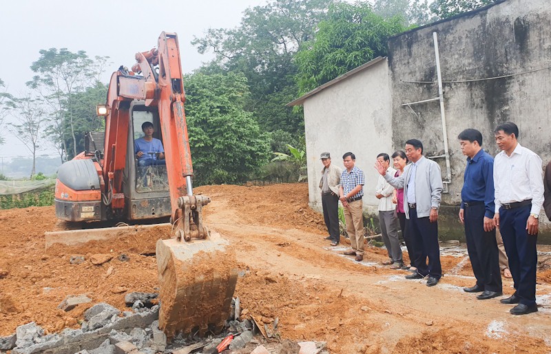 Lãnh đạo Công ty CP Licogi 14, các đoàn thể khu 5, xã Cấp Dẫn dự ngày khởi công nhà mới cho gia đình ông Nguyễn Văn Tích.