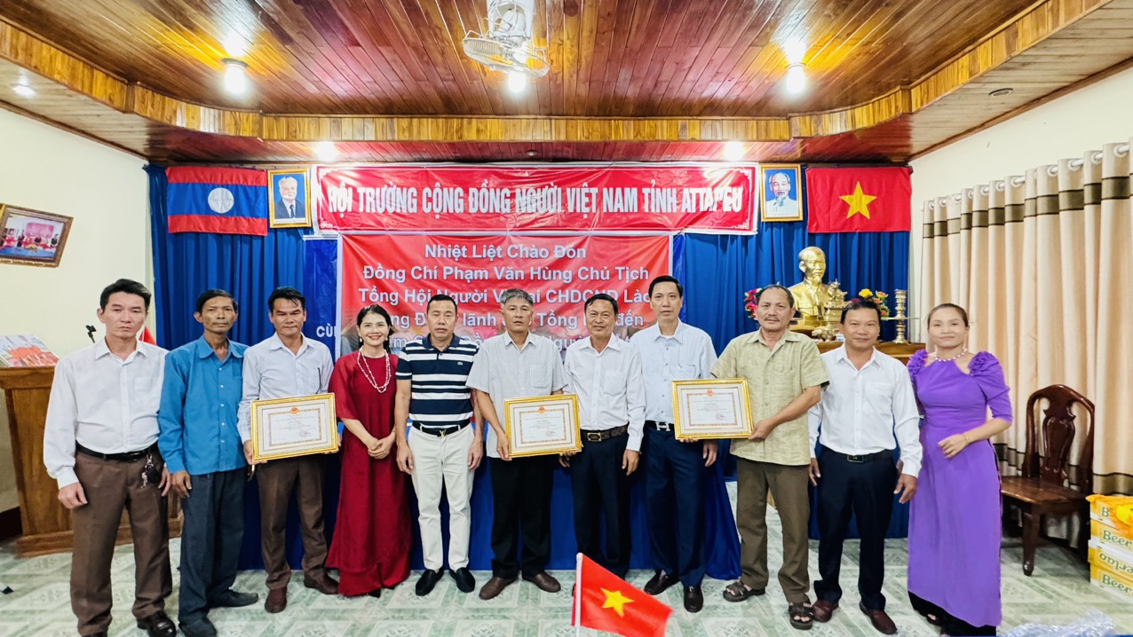 Tại tỉnh Attapeu, Đoàn công tác của Tổng hội Người Việt Nam tại Lào, do ông Phạm Văn Hùng, Chủ tịch Tổng hội dẫn đầu đã trao bằng khen cho các tập thể cá nhân có thành tích xuất sắc trong phong trào cộng đồng, đoàn kết giúp đỡ nhau trong cuộc sống; chấp hành tốt đường lối chủ trương, chính sách pháp luật của nước sở tại, cùng nhau gìn giữ nét văn hóa truyền thống Việt trong các thế hệ kiều bào và luôn hướng về Tổ quốc.
