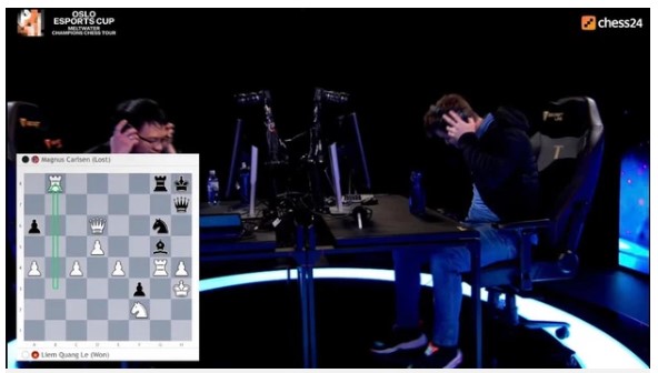 Tại Oslo Esports Cup, chặng chính đầu tiên của Champions Chess Tour 2022 diễn ra lúc 0h00 hôm nay (24/4), Siêu đại kiện tướng Lê Quang Liêm đã tạo nên cơn địa chấn trong làng cờ Vua khi lần đầu tiên đánh bại được kỳ thủ Na Uy Magnus Carlsen - người được ca tụng là "Vua cờ thế giới".