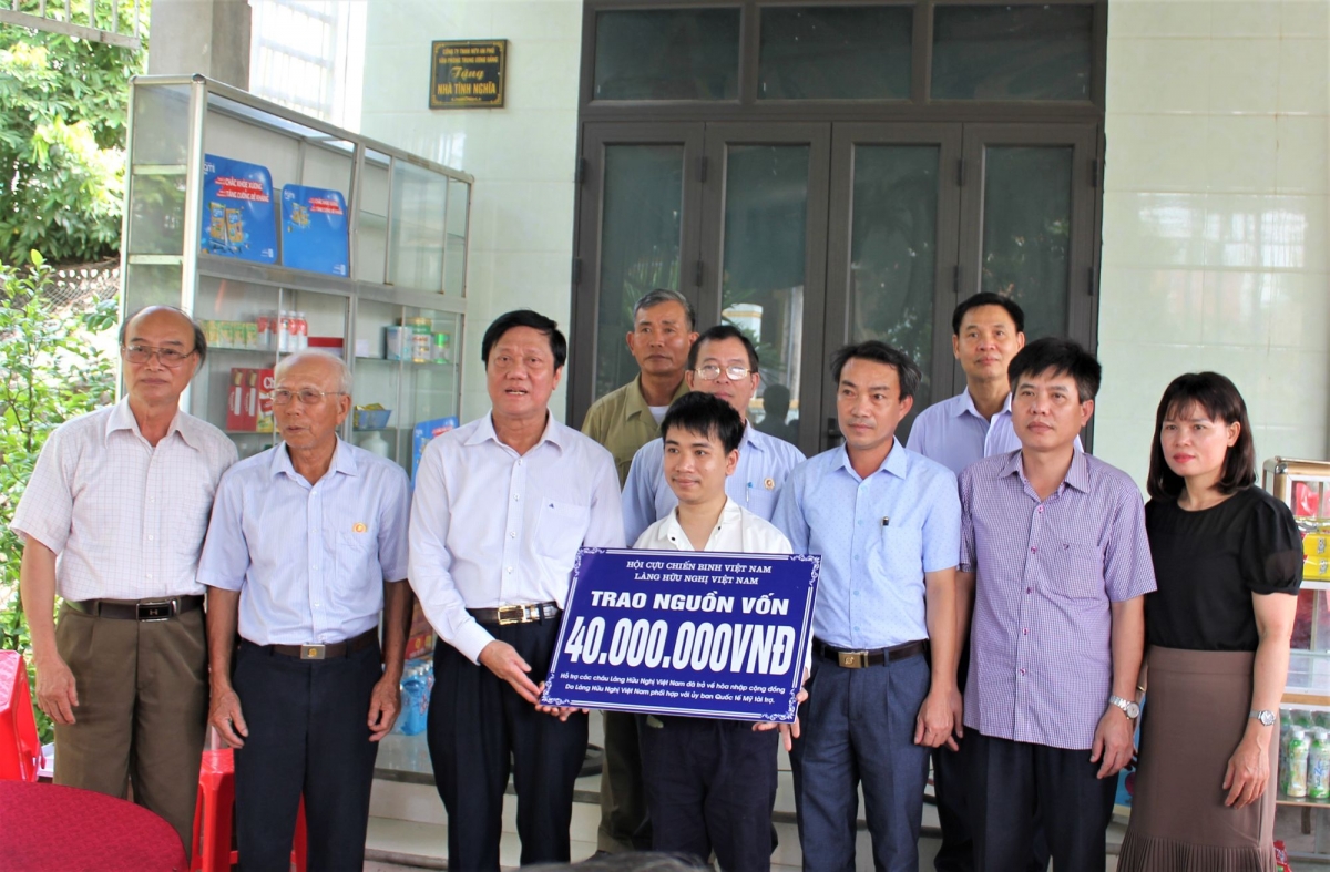 Tại đây, đoàn đã trao 40 triệu đồng cho em Phạm Trung Vệ. Đây là số tiền do Làng Hữu nghị Việt Nam phối hợp với Ủy ban Quốc tế Mỹ về Làng Hữu nghị, hỗ trợ thanh niên là NNCĐDC, nhằm hỗ trợ các em thực hiện ý tưởng phát triển kinh tế, cải thiện cuộc sống hằng ngày, giảm bớt khó khăn cho gia đình, giúp các em từng bước hòa nhập cộng đồng.