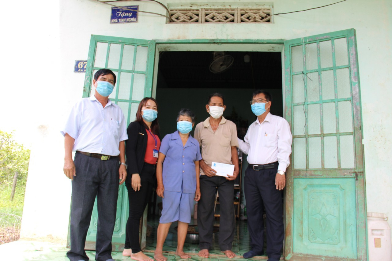 Ông Trần Văn Thành (bìa phải) thăm tặng quà nạn nhân