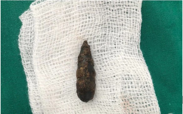 Đầu đạn nằm 54 năm trong người bệnh nhân được các bác sĩ lấy ra thành công.
