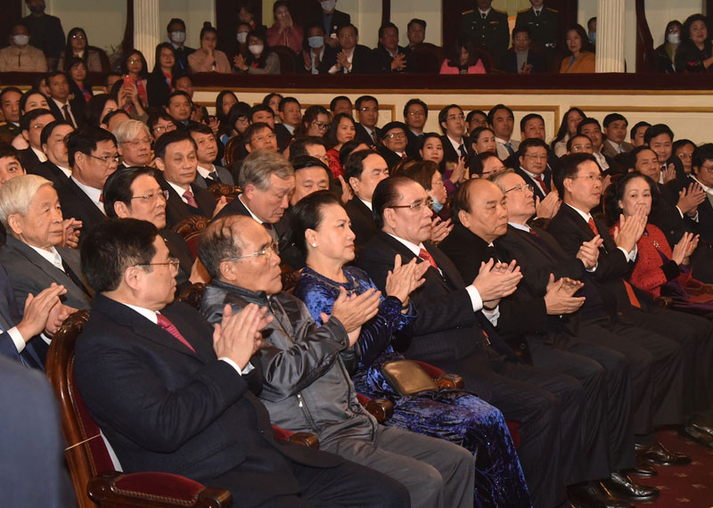 Dự lễ có Thủ tướng Chính phủ Nguyễn Xuân Phúc; nguyên Tổng Bí thư Nông Đức Mạnh; Chủ tịch Quốc hội Nguyễn Thị Kim Ngân; nguyên Chủ tịch Quốc hội Nguyễn Sinh Hùng. Đồng chí Trần Quốc Vượng, Ủy viên Bộ Chính trị, Thường trực Ban Bí thư dự và phát biểu ý kiến chỉ đạo.