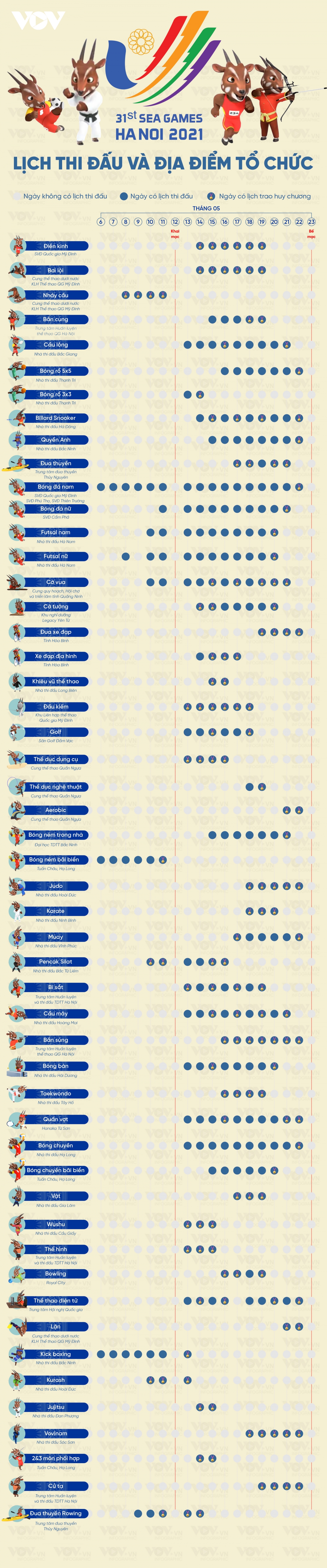 Đại hội thể thao Đông Nam Á (SEA Games 31) sẽ được diễn ra từ ngày 12 – 23/5/2022, tại các địa điểm Hà Nội, Bắc Ninh, Hải Dương, Hải Phòng, Quảng Ninh, Hà Nam, Nam Định, Ninh Bình, Hòa Bình, Vĩnh Phúc, Phú Thọ và Bắc Giang.